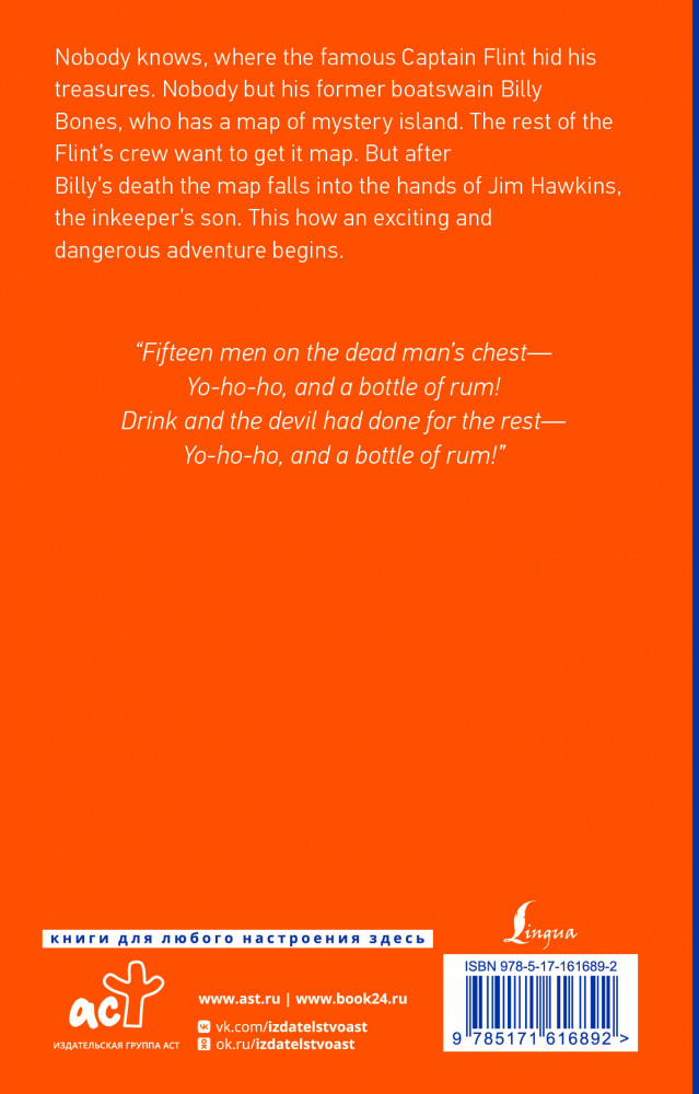 💳 Оплатить за товар можно при получении 🇰🇿 Есть бесплатная доставка по Казахстану от 1 дня 🎁 Копите бонусы с каждой покупки Серия: Exclusive Classics Paperback С детства мечтаете о морских приключениях и поисках пиратского клада? Почему бы не оживить эти мечты с помощью романа Роберта Льюиса Стивенсона «Остров Сокровищ»? Однажды в провинциальной гостинице «Адмирал Бенбоу», стоящей недалеко от Бристоля, появляется необычный постоялец, назвавшийся Капитаном. Он слишком много пьет и явно кого-то боится. Выясняется, что его имя Билли Бонс и он когда-то был членом команды великого Флинта. Бывшие товарищи считают его предателем и вручают черную метку, после чего Билли Бонс умирает от приступа. Сын владельцев гостиницы Джим Хокинс находит в сундуке моряка таинственную карту. Он показывает ее доктору Ливси и сквайру Трелони. Выясняется, что на карте показано, где спрятаны сокровища Флинта. Тогда они решают отправиться на поиски этого клада на судне «Испаньола» под командованием капитана Смоллетта. |