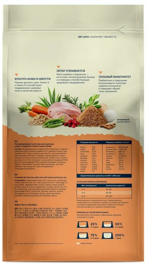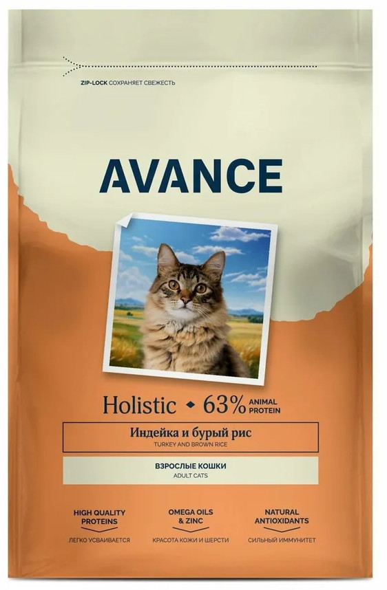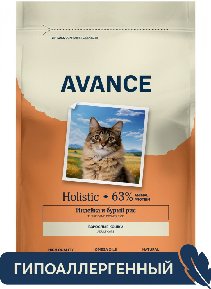 Avance Корм сухой для взрослых кошек с индейкой и бурым рисом