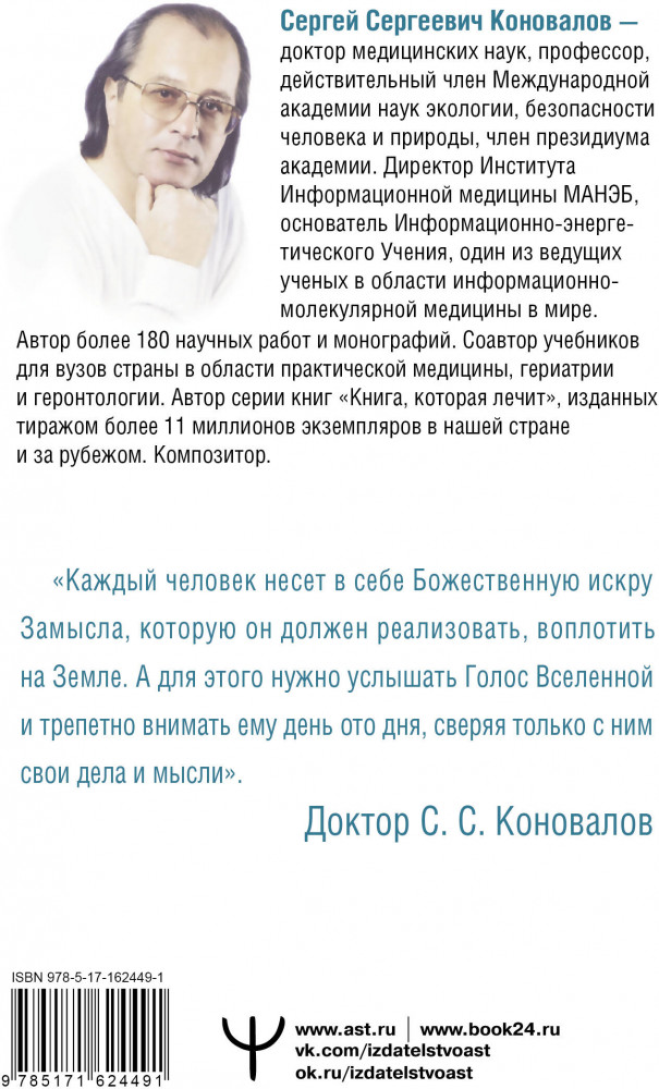 💳 Оплатить за товар можно при получении 🇰🇿 Есть бесплатная доставка по Казахстану от 1 дня 🎁 Копите бонусы с каждой покупки Серия: Преодоление болезни Перед вами одна из центральных книг Сергея Сергеевича Коновалова, которая рассказывает о Пути Доктора, о начале его работы с Энергией Сотворения, о чудесных историях исцеления пациентов-студентов Доктора. В книге подробно описаны все этапы обучения и лечения людей, вставших на путь Информационно-энергетического лечения, рассказано о практике заочного лечения и даны советы по возвращению и сохранению здоровья. Это очень важная книга для всех пациентов-студентов Доктора Коновалова, особенно для тех, кто только проходит начальный курс Информационно-энергетического Учения, и тех, кто проходит обучение и лечение заочно. |