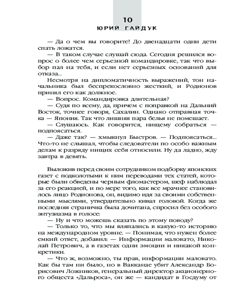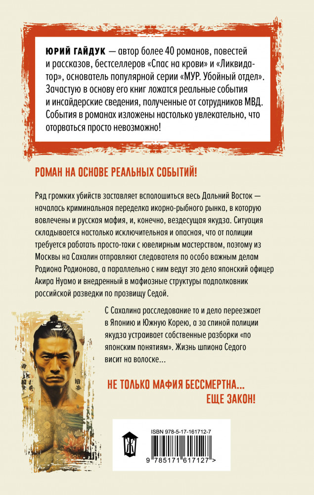 💳 Оплатить за товар можно при получении 🇰🇿 Есть бесплатная доставка по Казахстану 🎁 Копите бонусы с каждой покупки Серия: Мафиози и шпионы Роман на основе реальных событий! Ряд громких убийств заставляет всполошиться весь Дальний Восток — началась криминальная переделка икорно-рыбного рынка, в которую вовлечены и русская мафия, и, конечно, вездесущая якудза. Ситуация складывается настолько исключительная и опасная, что от полиции требуется работать просто-таки с ювелирным мастерством, поэтому из Москвы на Сахалин отправляют следователя по особо важным делам Родиона Родионова, а параллельно с ним ведут это дело японский офицер Акира Нуамо и внедренный в мафиозные структуры подполковник российской разведки по прозвищу Седой. С Сахалина расследование то и дело переезжает в Японию и Южную Корею, а за спиной полиции якудза устраивает собственные разборки «по японским понятиям». Жизнь шпиона Седого висит на волоске... |