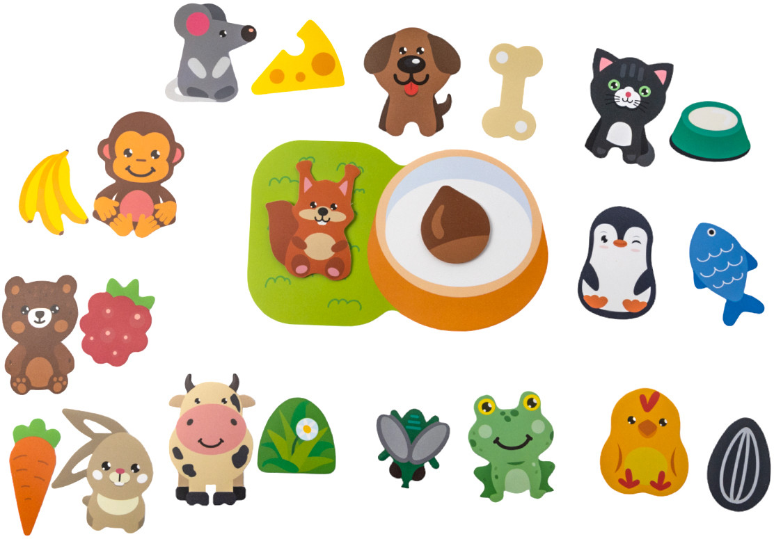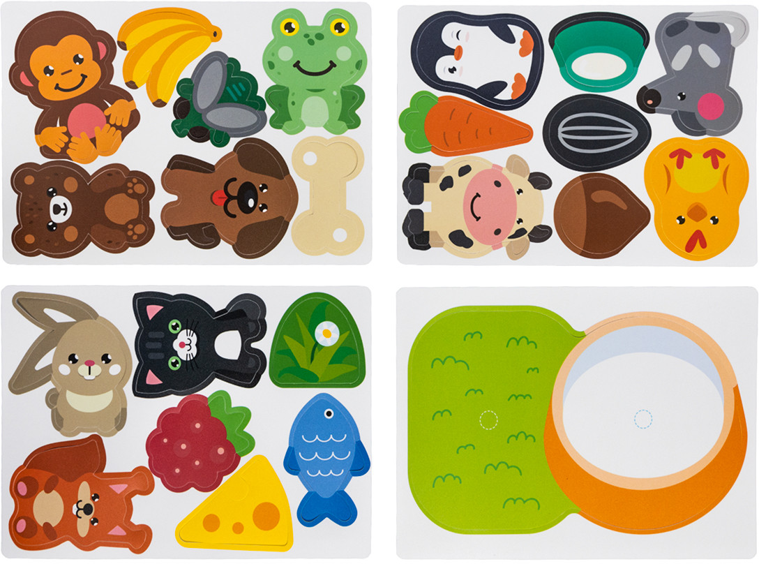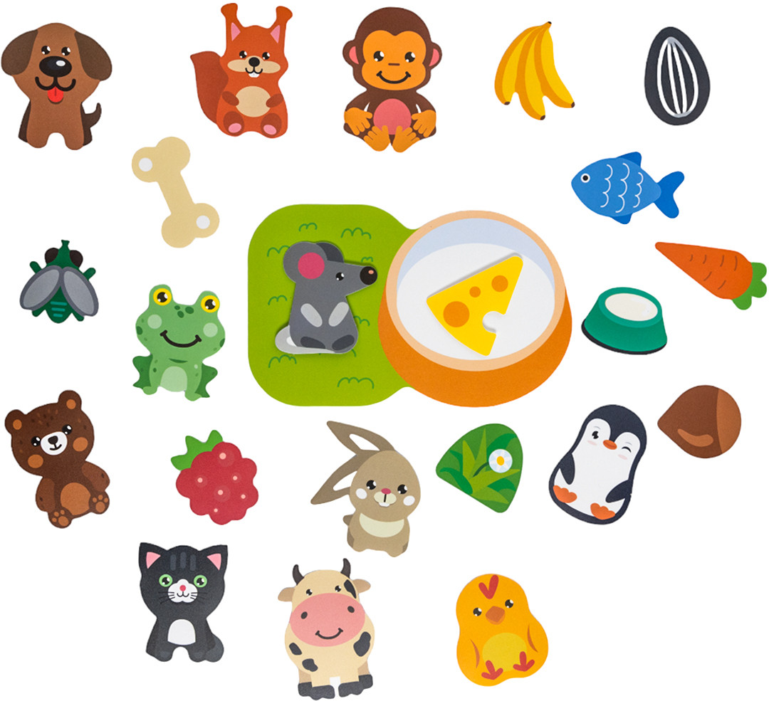 С развивающей игрой на липучках «Кто что ест?» дети в игровой форме познакомятся с различными животными и узнают, что они предпочитают на обед. Пластик на липучках «Кто что ест?» способствует развитию у ребенка мелкой моторики, логического мышления и памяти. |
