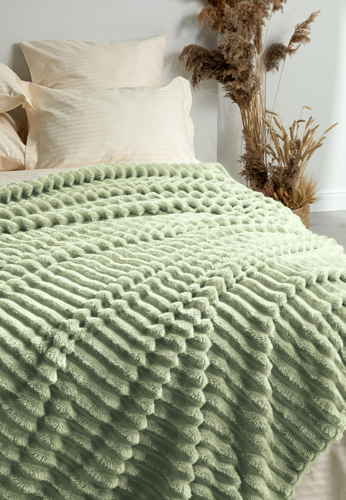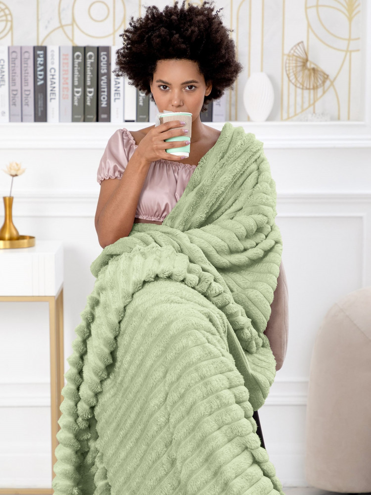 Мягкий нежный плед. Тоненький, не сильно греет при зиме за окном, но для весны накинуть на себя вечером подходит. Красивый цвет, фактура, приятный тактильно.