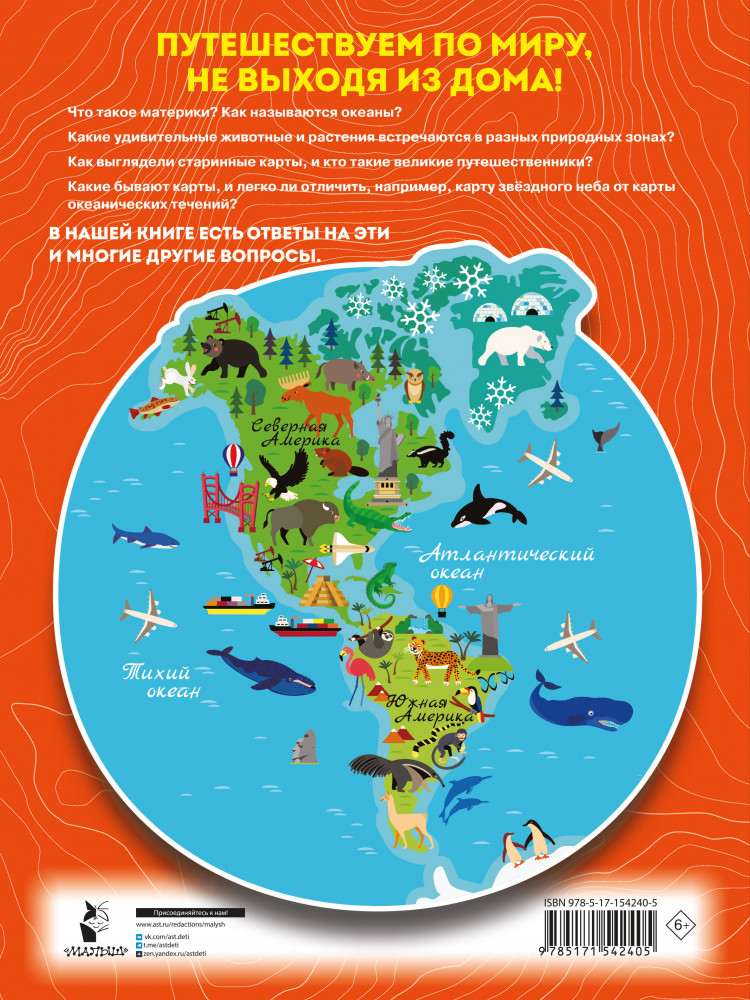 Атлас мира с обучающими заданиями и раскраскойВ данный момент этот товар отсутствует в продаже. Возможно, у нас найдется аналогичный или похожий товар здесь. Серия: Большой атлас для детей Красочно иллюстрированная книга «Атлас мира с обучающими заданиями и раскраской» — это большой сборник разнообразных географических карт, созданных специально для детей. Малыши выучат названия материков и океанов, познакомятся с флорой и фауной природных зон нашей планеты, прочитают о великих географических открытиях, научатся отличать карту звёздного неба от карты океанических течений и узнают много нового и интересного. Для младшего школьного возраста. |