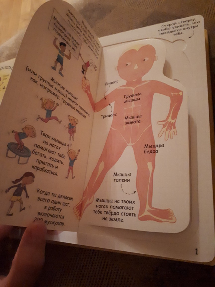 Книга замечательная, оправдывает свою цену. Твердые странички, которые ребенок ни за что не порвет. Само открывание "окошек" волшебно, окунулись вместе с ребенком в изучение строения человека. Советуем всем родителям!