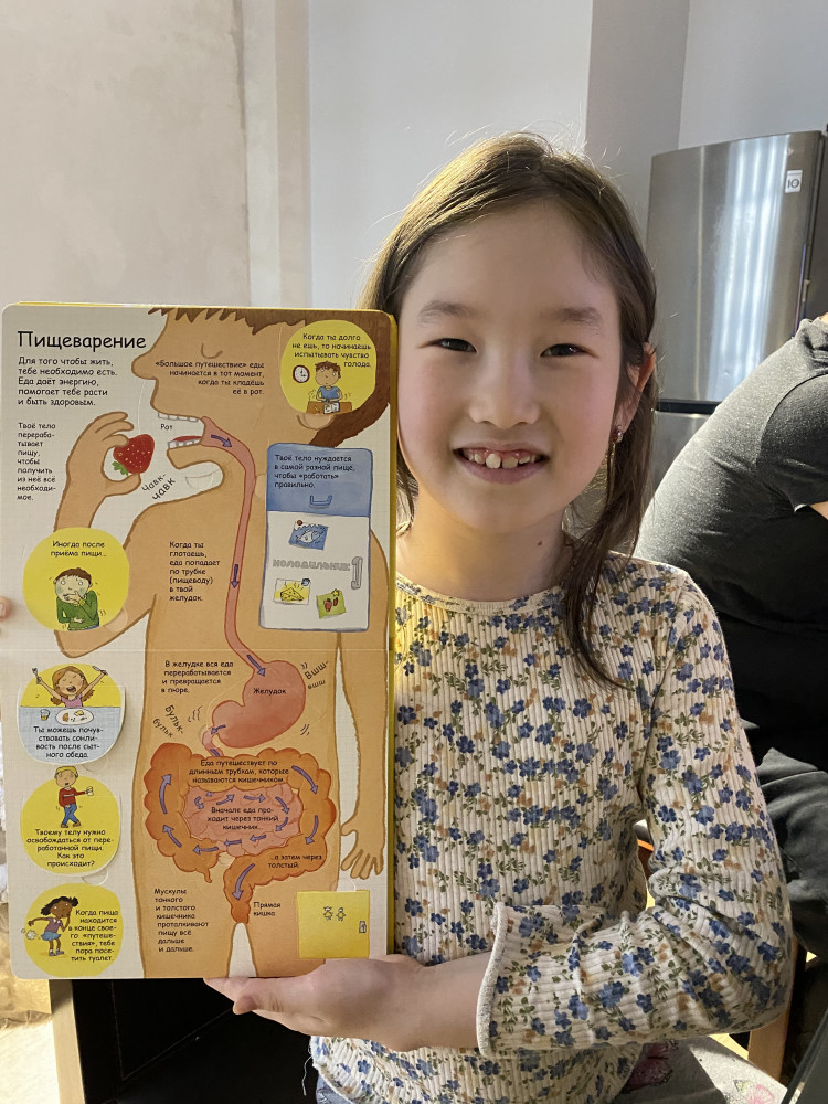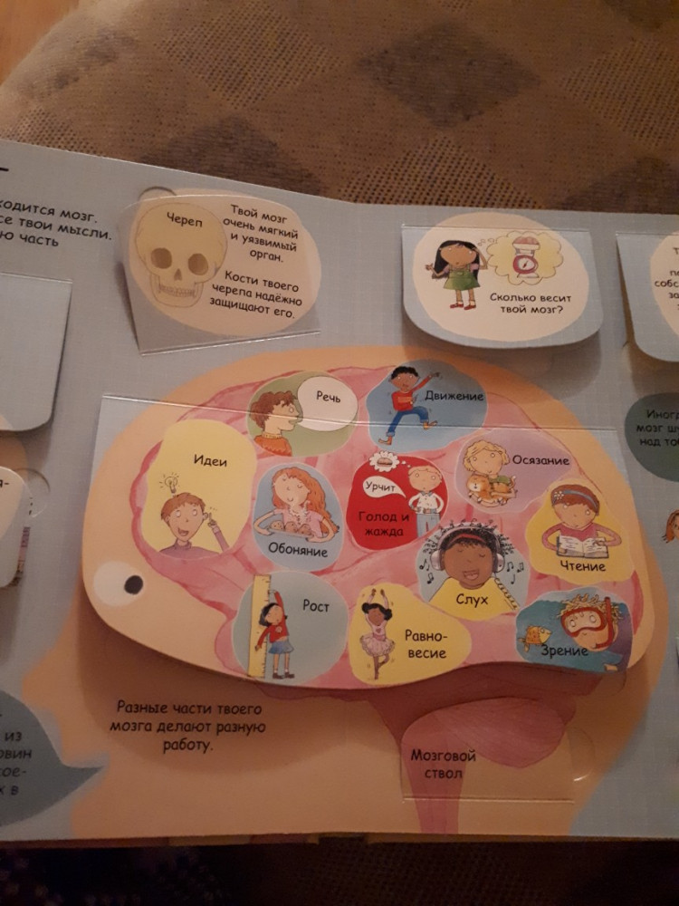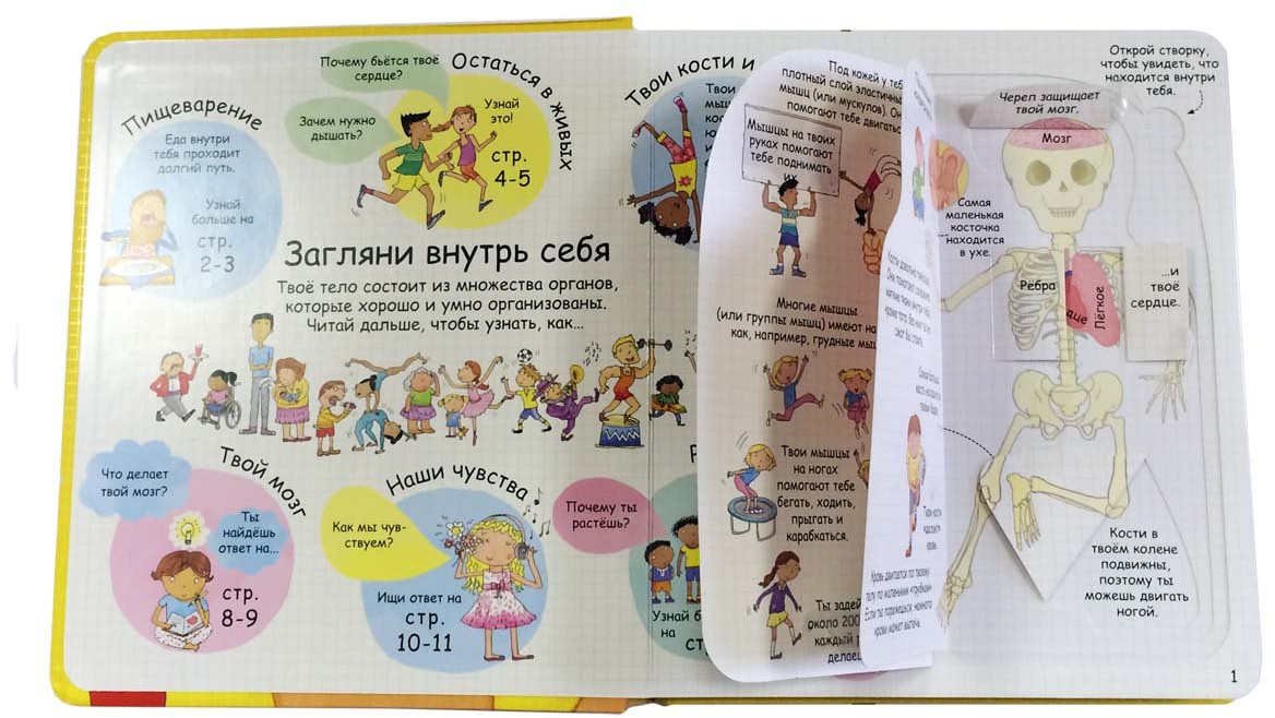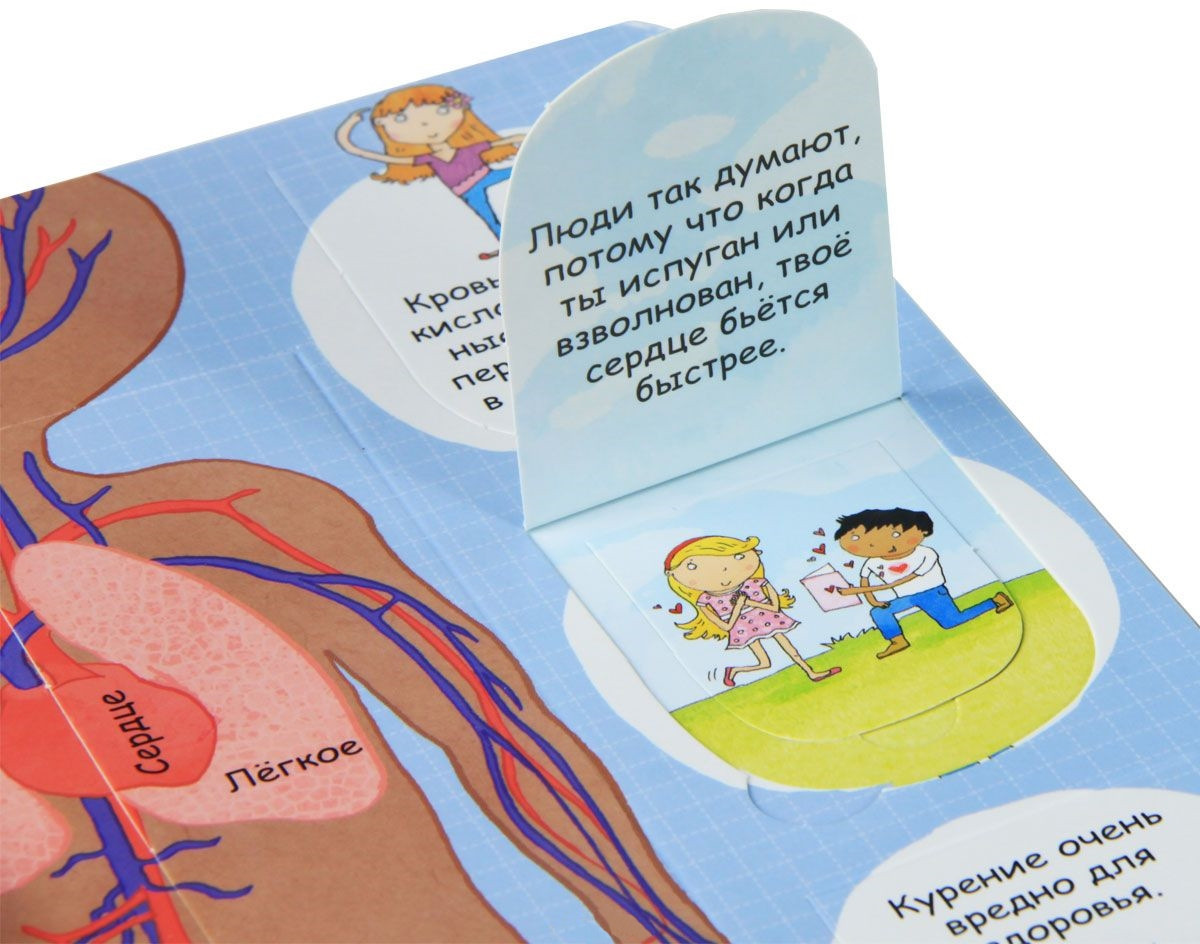Сын в восторге от этой книги. Если раньше приходилось бесконечно отвечать на вопросы про внутреннее строение человека «А где легкие? А что такое печень? А где у меня вены? Что такое желудок? А что у меня в ухе?», то теперь ребёнок находит нужную информацию в книге. Заказ получили неделю назад, и все эти дни книга практически всегда с нами, даже на улице. Показывает её друзьям. Цена соответствует качеству, плюс эти окошки! За ними столько интересного! Пока эта книга у сына в фаворитах )) И ведь вопросы не убавились, а наоборот, изучив книгу, сын теперь задаёт вопросы с другим подтекстом, знаем ли мы правильный ответ ))) Рекомендую! Даже взрослым будет интересно.