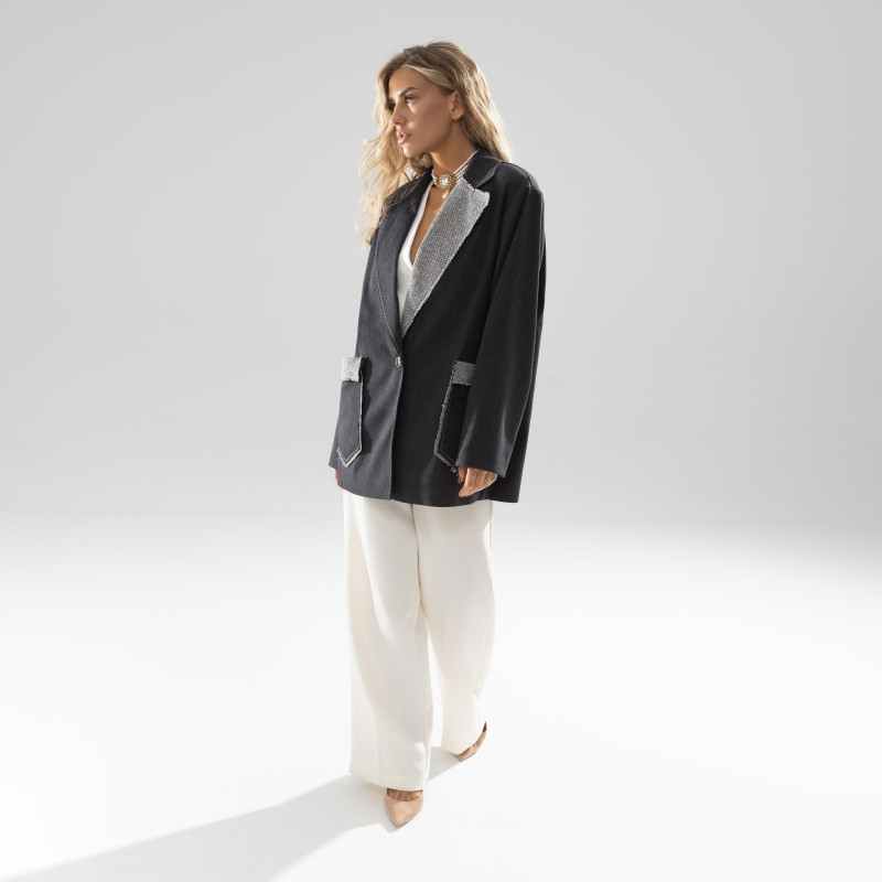 костюмная ткань «тиар», трикотаж «букле», атлас (65% п/э, 30% вискоза, 5% спандекс)
