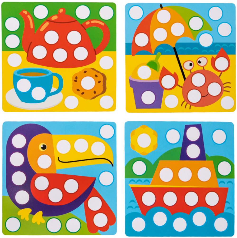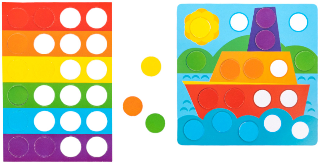 кружочки не крепятся, ребенку составлять неудобно нужно всегда поправлять. возможно было бы удобнее с липучками или клейкой лентой. Можно заламинировать и пластилином заплатки делать. В целом не пожалела что купила!