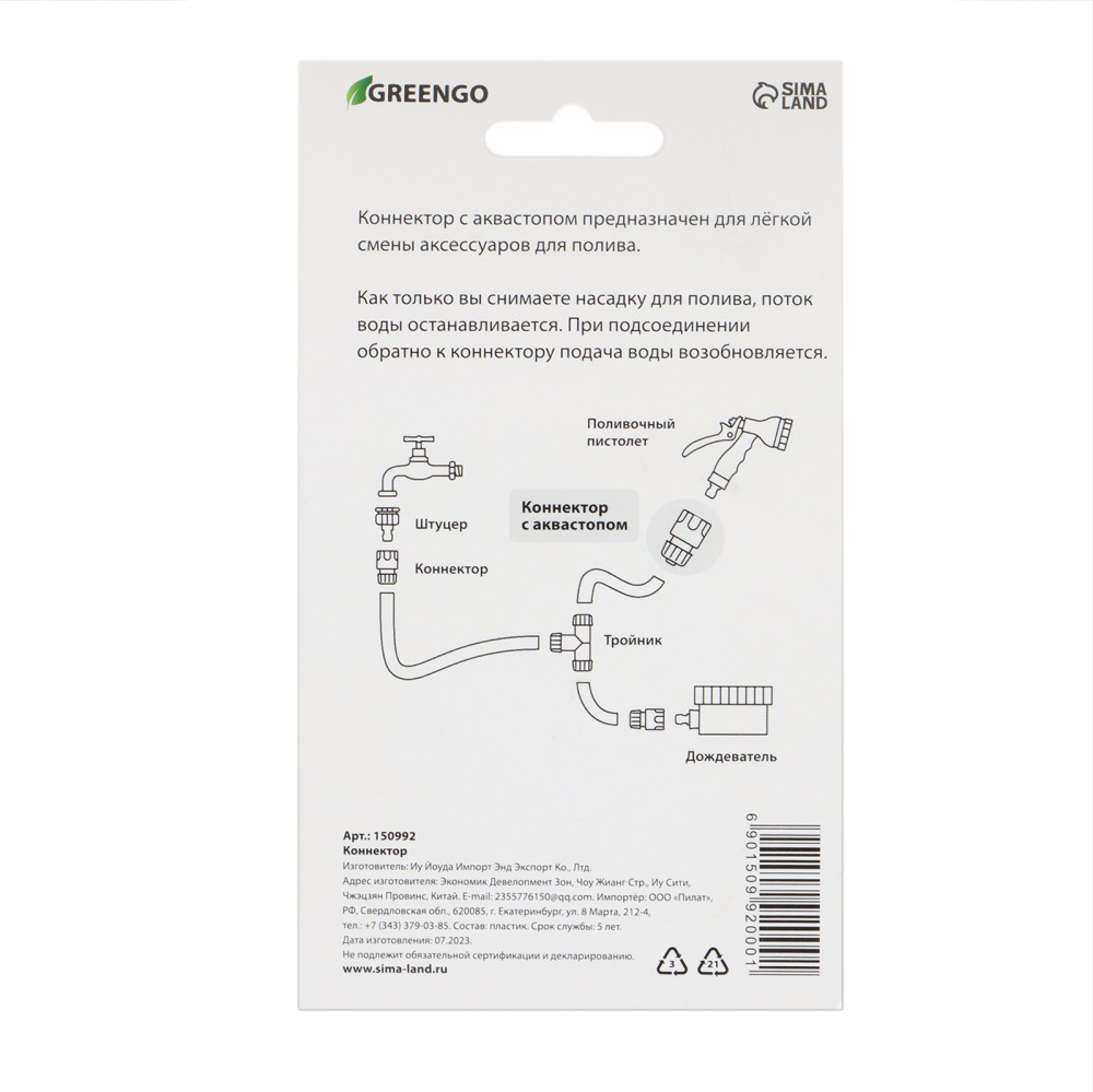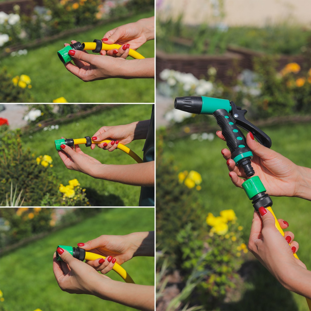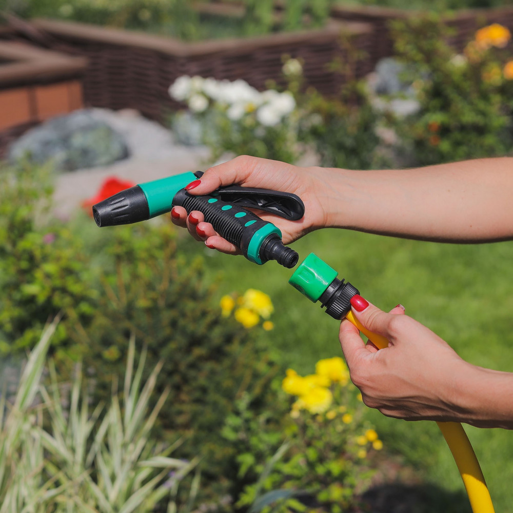 Коннектор с аквастопом предназначен для лёгкой смены аксессуаров для полива, то есть для соединения шланга с пистолетами-разбрызгивателями и распылительными насадками. С ним вы сможете с легкостью менять насадки по необходимости, кроме того он оснащен системой аквастоп. Как только вы снимаете насадку для полива, поток воды останавливается. При подсоединении обратно к коннектору подача воды возобновляется. |