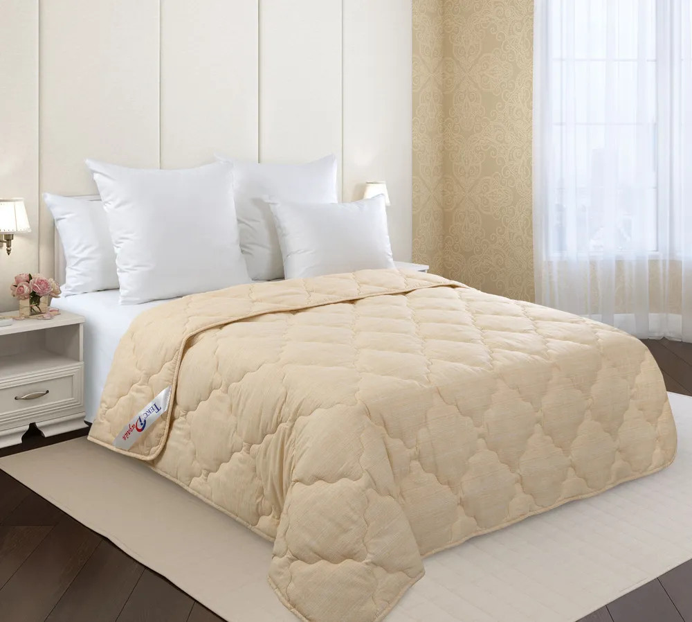 Одеяло пышное, объемное, мягкое и упругое, благодаря тому что изготовлено на одноигольной стегальной машине. Привлекательный стеганый узор не только украшает одеяло, но также служит для равномерного распределения наполнителя, не позволяя ему сбиваться в комки, а декоративный кант по всему периметру не только служит украшением, но и предотвращает преждевременное изнашивание.