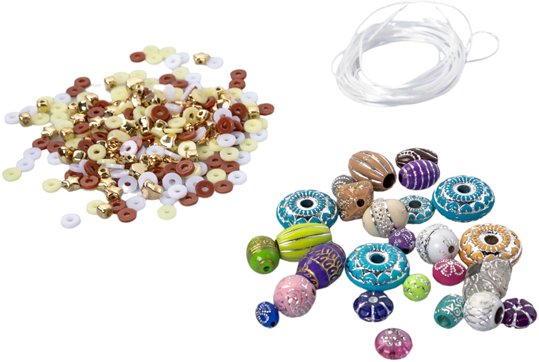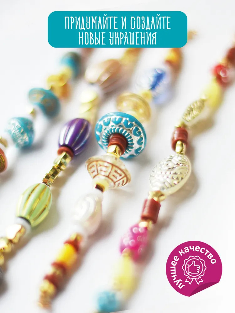 • пластиковые бусины разной формы цветной гаммы — 1 упаковка;