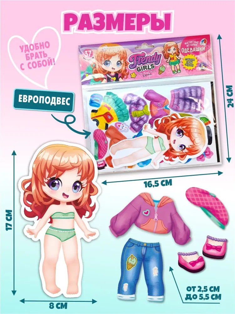 💳 Оплатить за товар можно при получении 🇰🇿 Есть бесплатная доставка по Казахстану от 1 дня 🎁 Копите бонусы с каждой покупки Серия: Магнитные истории Это кукла Карина. Ее можно нарядить. Подбери ей красивый наряд из набора Магнитная игра для маленьких «Одевашки. Карина». Серия «Магнитные истории» (европодвес). С данной игрой можно научить ребёнка правильно подбирать одежду и аксессуары по погоде и ситуации. Игра развивает фантазию, логическое мышление, чувство стиля. |