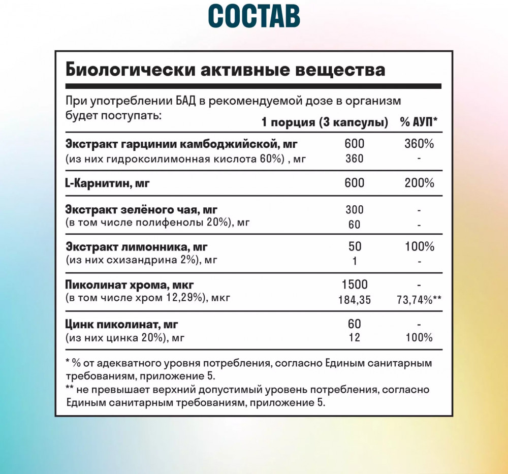 LeafToGo Комплекс «Multi slim»В данный момент этот товар отсутствует в продаже. Возможно, у нас найдется аналогичный или похожий товар здесь. Комплекс мультивитаминов Slim помогает уменьшить аппетит, подавляет накопление жиров, улучшает метаболизм, способствует комфортному пищеварению и усвоению питательных веществ. В комплексе пиколинт хрома, который снижает тягу к сладкому, и L-картинин, отвечающий за эффективное жиросжигание. |