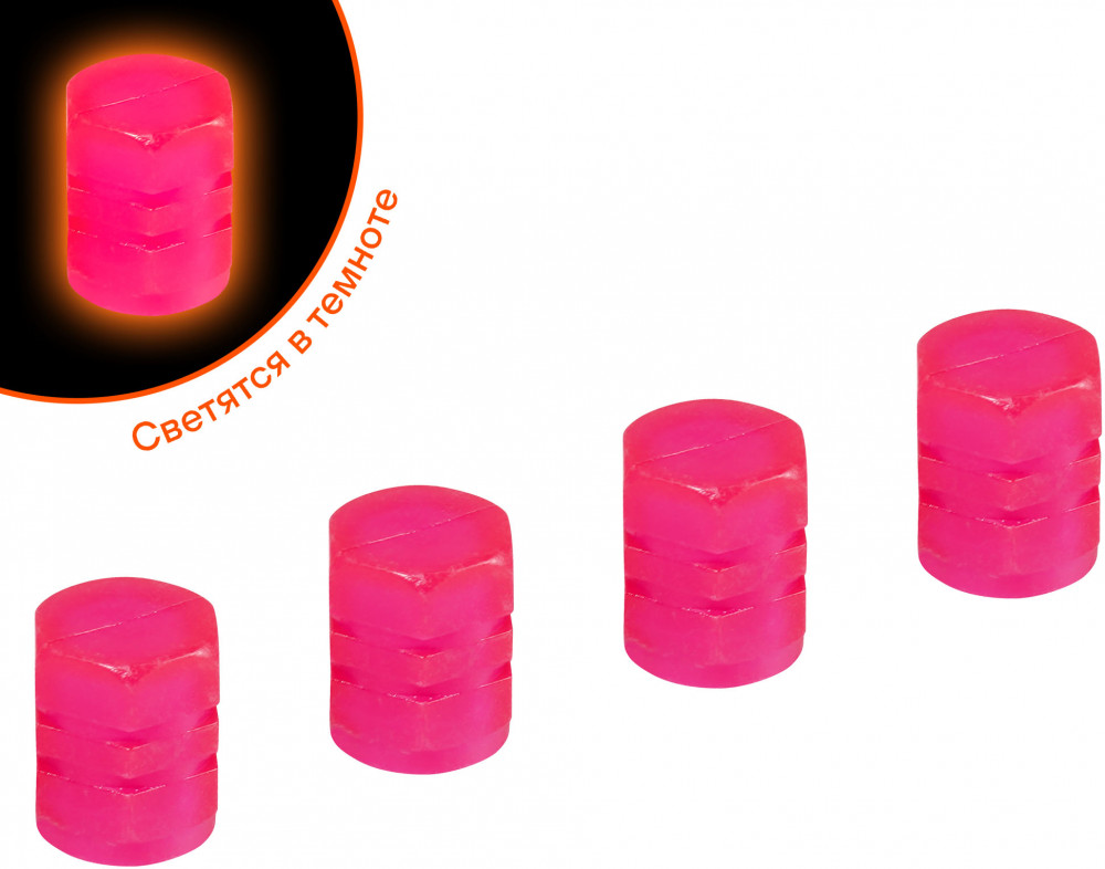 Колпачки предназначены для защиты шинного вентиля от попадания загрязнений и жидкости. Колпачки помогают создать герметичность внутри шины автомобиля, создавая барьер для травления воздуха. Колпачки светятся в темноте.