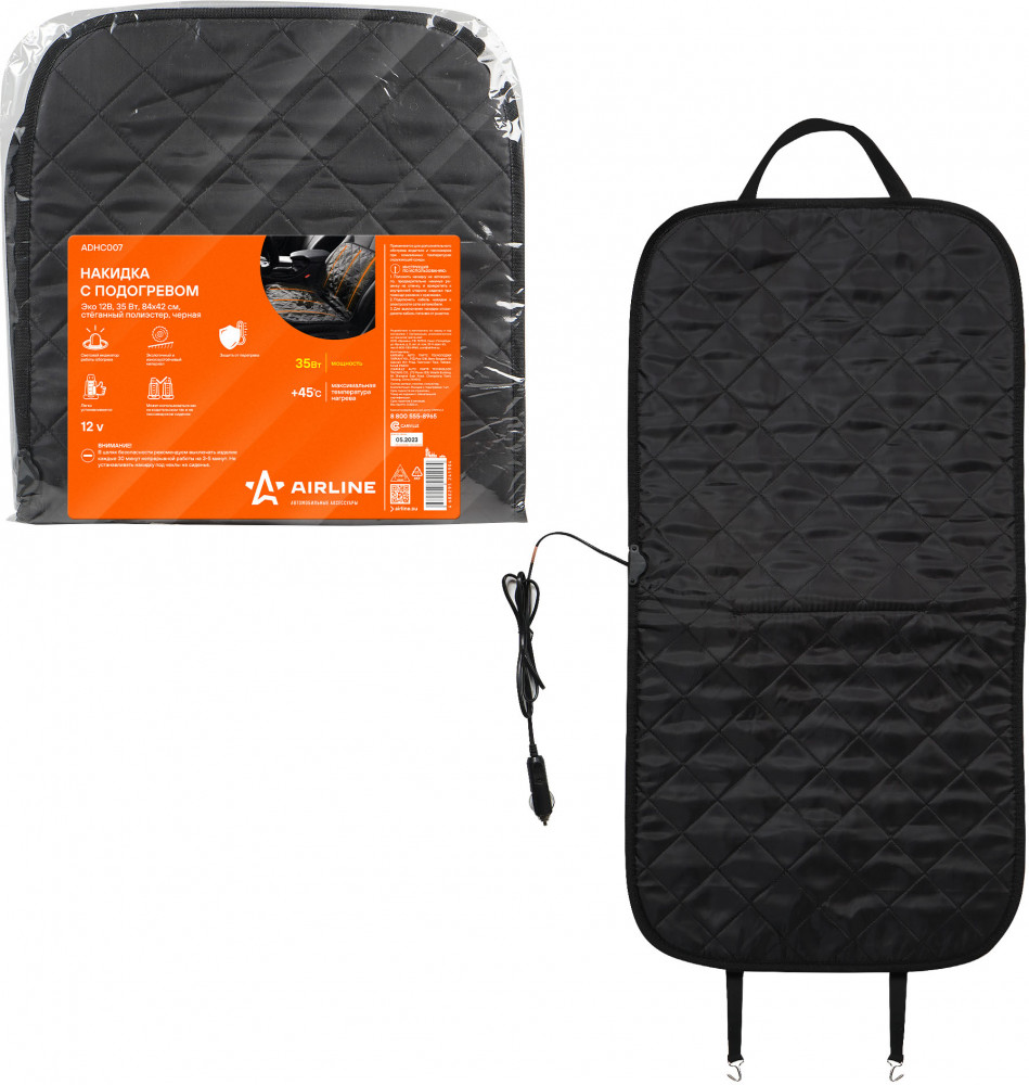 Airline Накидка на сиденье с подогревомВ данный момент этот товар отсутствует в продаже. Возможно, у нас найдется аналогичный или похожий товар здесь. Представляет собой накидку на переднее сиденье из гладкого стёганова полиэстера с нагревательным элементом. Крепление происходит при помощи резинок с крючками, которые цепляются под сиденьем. Питание от бортовой сети 12V через гнездо прикуривателя. Применяется для дополнительного обогрева водителя и пассажиров при пониженных температурах. Накидка имеет прямоугольную форму и универсальную систему креплений, устанавливается непосредственно на переднее сиденье автомобиля. Необходимая для работы потребляемая мощность составляет 35 Вт, а для начала активизации изделия напряжение питающей сети должно составлять 12В. Для безопасности использования накидки оснащены термистором, который отключает накидку при нагреве +65°С. |