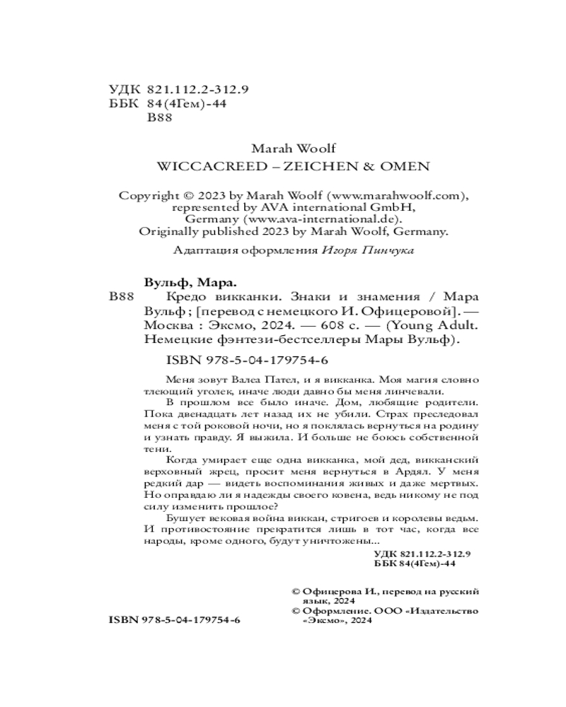 💳 Оплатить за товар можно при получении 🇰🇿 Есть бесплатная доставка по Казахстану от 1 дня 🎁 Копите бонусы с каждой покупки Серия: Young Adult. Немецкие фэнтези-бестселлеры Мары Вульф Мир Валеи рушится: война разрывает на части ее родной Ардял. Три народа бьются за господство в магическом мире, куда никогда не ступала нога человека. Черная и белая магия, королева ведьм и верховная жрица — извечное противостояние. Дед Валеи, жрец Ардяла, знает, что его внучка особенная, и в ее силах проникать в чужие воспоминания. Но как далеко девушку заведет этот путь? Любовь и ненависть. Тайны старинных викканских гримуаров. Загадочное прошлое. Знаки судьбы и предсказания рун. Серия — настоящая головоломка, написанная потрясающим слогом знаменитой Мары Вульф! |