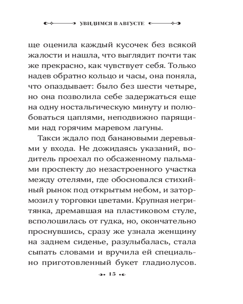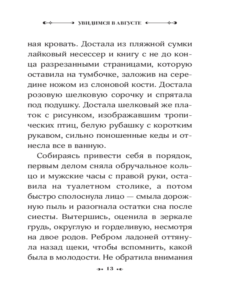 💳 Оплатить за товар можно при получении 🇰🇿 Есть бесплатная доставка по Казахстану от 1 дня 🎁 Копите бонусы с каждой покупки Серия: Neoclassic проза Стройная красивая брюнетка снимает номер в захудалой островной гостинице с видом на томную голубую лагуну. Днем она посещает могилу матери на вершине холма, а ближе к ночи развлекается в гостиничном баре под звуки сальсы и болеро. Она давно и счастливо замужем, но каждый год в один из дней августа переправляется на пароме на далекий остров, чтобы провести жаркую ночь со случайным любовником. Головокружительный, радостно чувственный роман «Увидимся в августе» — нежданный подарок от одного из величайших писателей, которых когда-либо знал мир. |