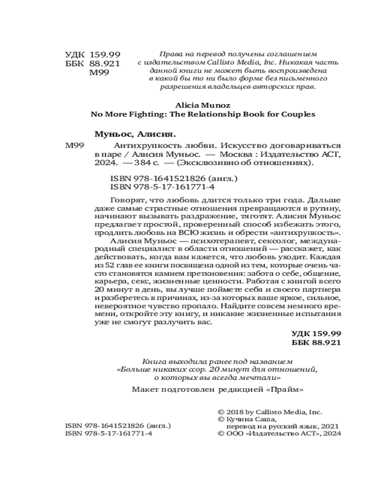 💳 Оплатить за товар можно при получении 🇰🇿 Есть бесплатная доставка по Казахстану от 1 дня 🎁 Копите бонусы с каждой покупки Серия: Эксклюзивно об отношениях Говорят, что любовь длится только три года. Дальше даже самые страстные отношения превращаются в рутину, начинают вызывать раздражение, тяготят. Но если вы сможете правильно пережить это сложное время, ваша пара обретет «антихрупкость», и никакие жизненные испытания уже не смогут разлучить вас. |