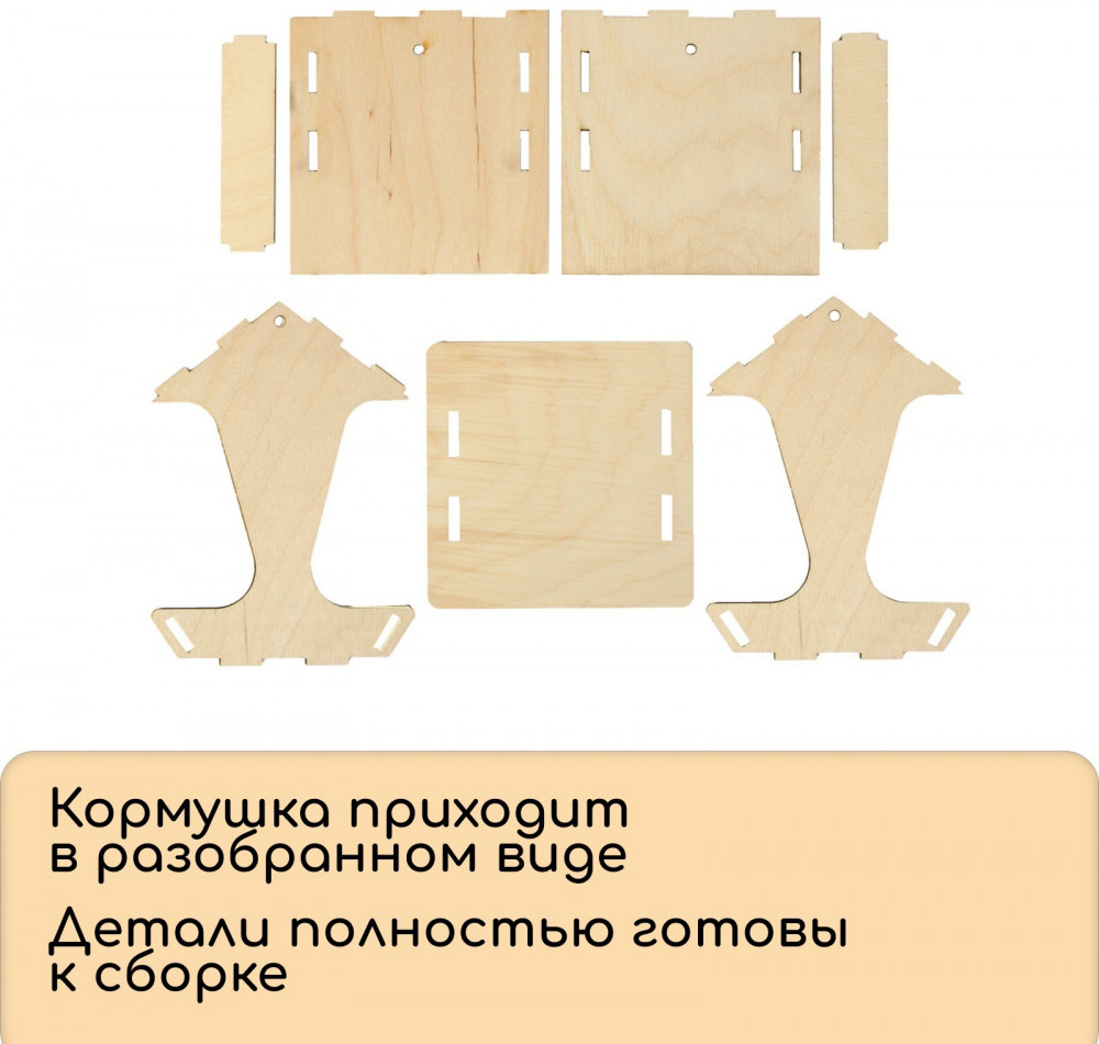 Кормушка пригодится, чтобы прикормить птиц в холодный сезон. Изделие поставляется в разобранном виде.