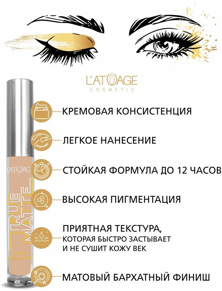 L’atuage Cosmetic Тени для век жидкие «True Matte», оттенок 803 Дымчато розовый