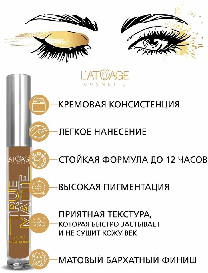 L’atuage Cosmetic Тени для век жидкие «True Matte», оттенок 811 Умбра