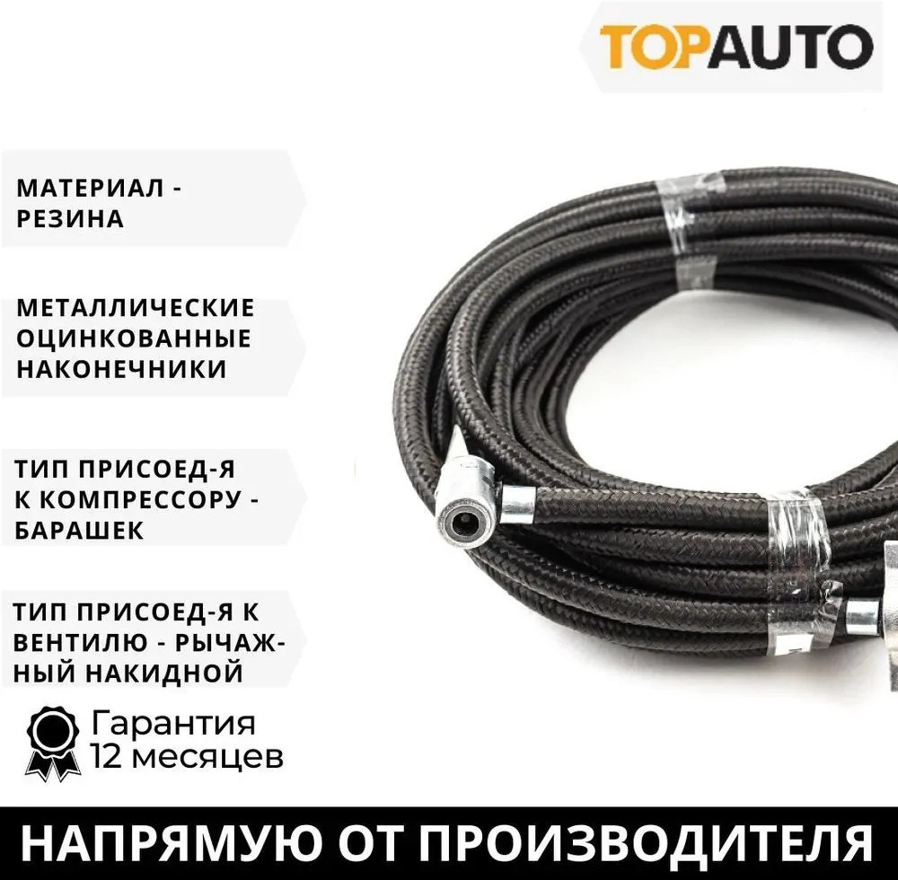 Предназначенный для подкачки шин шланг 16 м для компрессора. Этот резиновый шланг подкачки колес для Камаза и других грузовых автомобилей оснащен оцинкованными металлическими наконечниками; тип присоединения к компрессору — барашек, к вентилю — рычажный накидной.