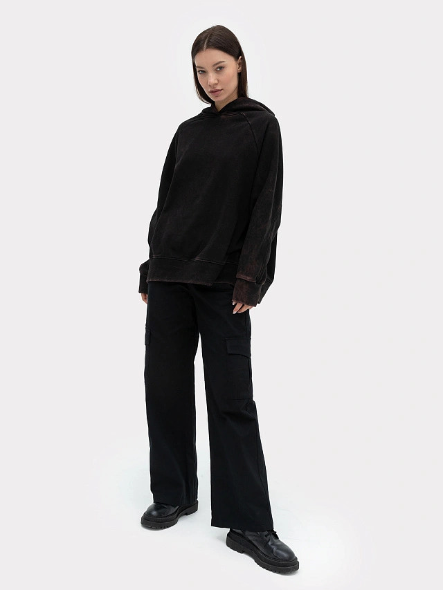 Оверсайз, брала на размер меньше, но даже если на два размера меньше, было бы тоже хорошо. А так-модель отличная, капюшон большой, ткань плотная, сшито аккуратно.