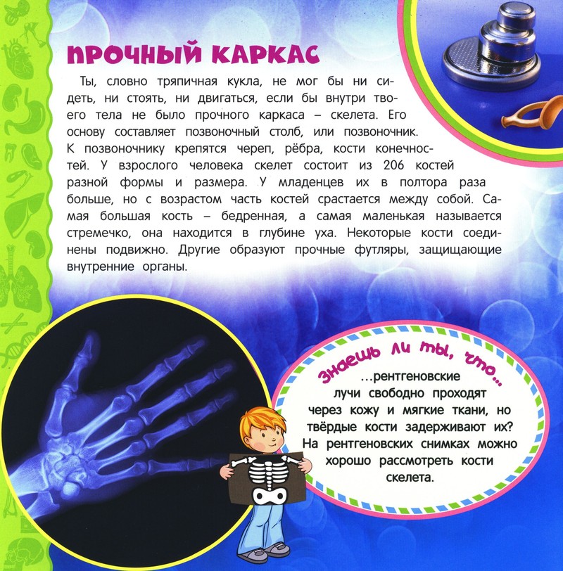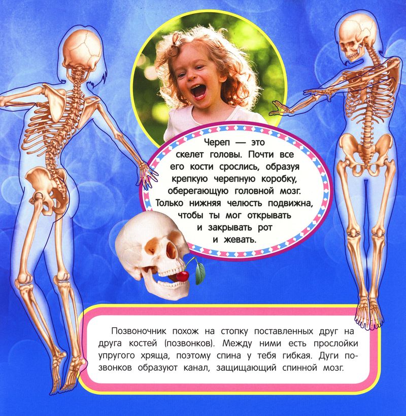 Книга хорошая, яркие иллюстрации, белые страницы с доступным текстом. Я искала книгу и строении скелета человека и костей (моему сыну 5 лет это было очень интересно), остановила выбор на ней и не пожалела!