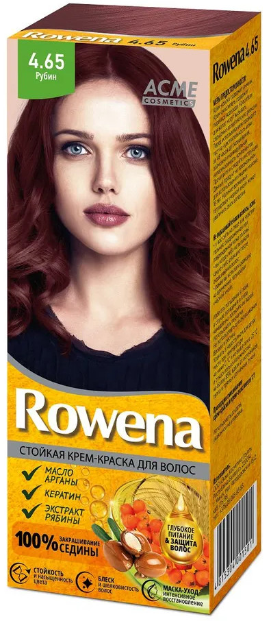 Стойкая крем-краска Rowena — это здоровые, мягкие, шелковистые волосы. Кремовая текстура краски легко наноситься и глубоко проникает в структуру волоса, обеспечивая 100% закрашивание седины, а входящие в состав — экстракт рябины, кератин и масло арганы , усиливает цвет, придаёт блеск, защищает и укрепляет волосы. Маска с маслом овса и пантенолом завершает окрашивание: закрепляет цвет, увлажняет и питает, делает волос гладким и блестящим.