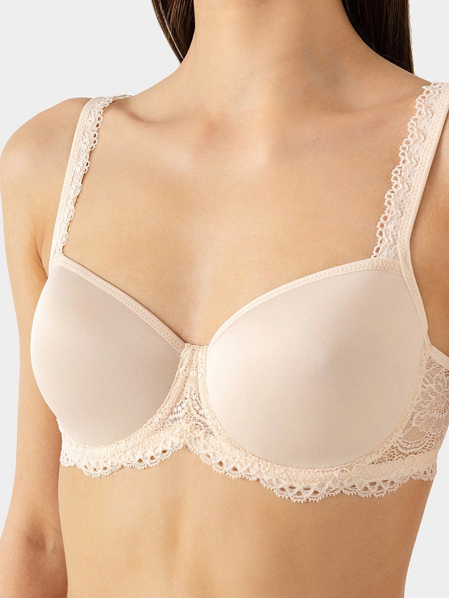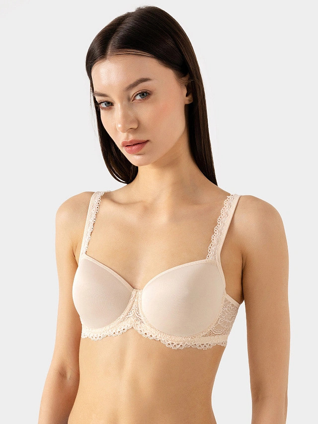 Бюстгальтер-макси с инновационной чашкой spacer. Невесомая чашка на косточках из тонкого дышащего материала обеспечивает превосходный комфорт и поддержку. Боковые детали стана из полупрозрачного кружева делают бюстгальтер еще более женственным. Модель идеально подойдет обладательницам пышного бюста. Благодаря специально разработанной анатомической конструкции, он удерживает на месте пышную грудь, сохраняя естественный и соблазнительный вид декольте. Универсальный дизайн делает этот бюстгальтер актуальным для любого наряда и ситуации. Длина бретелей регулируется. Для создания безупречного образа не забудьте добавить в комплект пару подходящих трусиков/