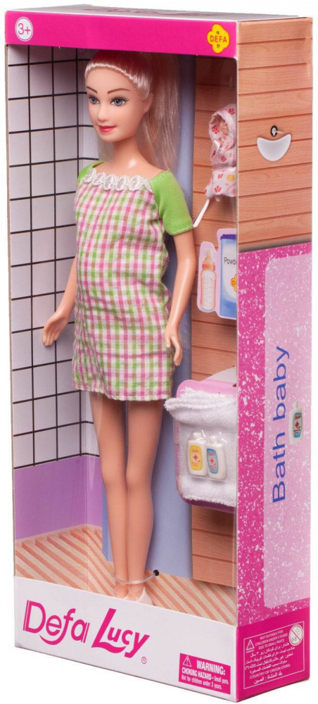 Очаровательная кукла DEFA LUCY молодая мамочка непременно понравится любой девочке и завоюет ее любовь с первого взгляда. Кукла одета в стильный, домашний комплект одежды. Молодая мамочка не расстается со своим малышом, который также представлен в комплекте. Кроме того, в наборе находятся все обязательные атрибуты для купания малыша: баночки со средством для купания и полотенце. У неё длинные волосы, которые можно расчесывать и создавать различные прически. Подвижные руки, ноги и голова позволяют придавать кукле разнообразные позы. Игрушка выполнена из качественных и безопасных материалов. Такая кукла будет отличным подарком для девочки!