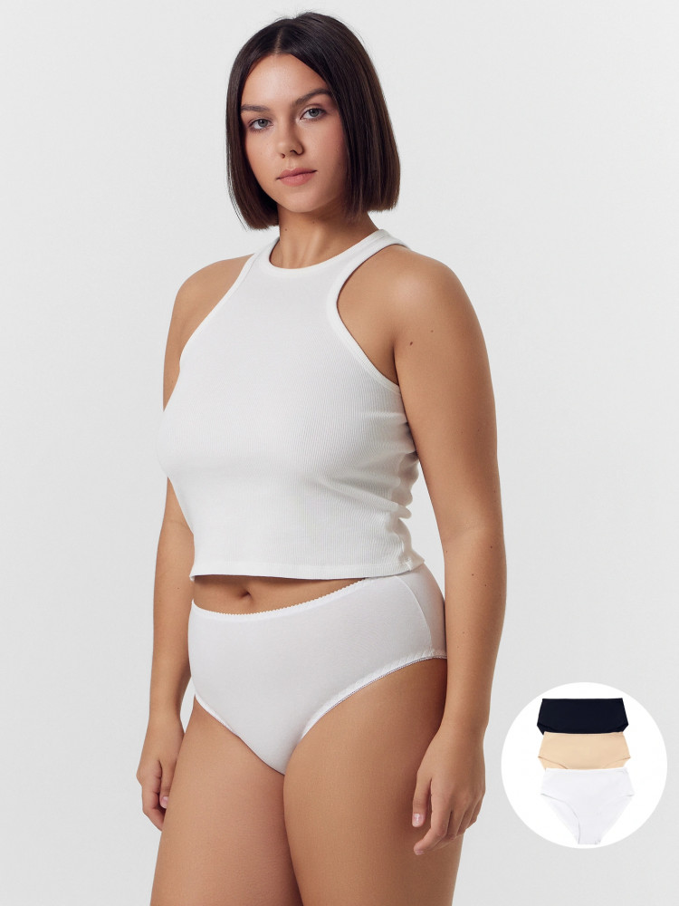 Качество трикотажа супер, приятно к телу, в комплекте 3 шт. Единственное для большого размера, посадка низковата.
