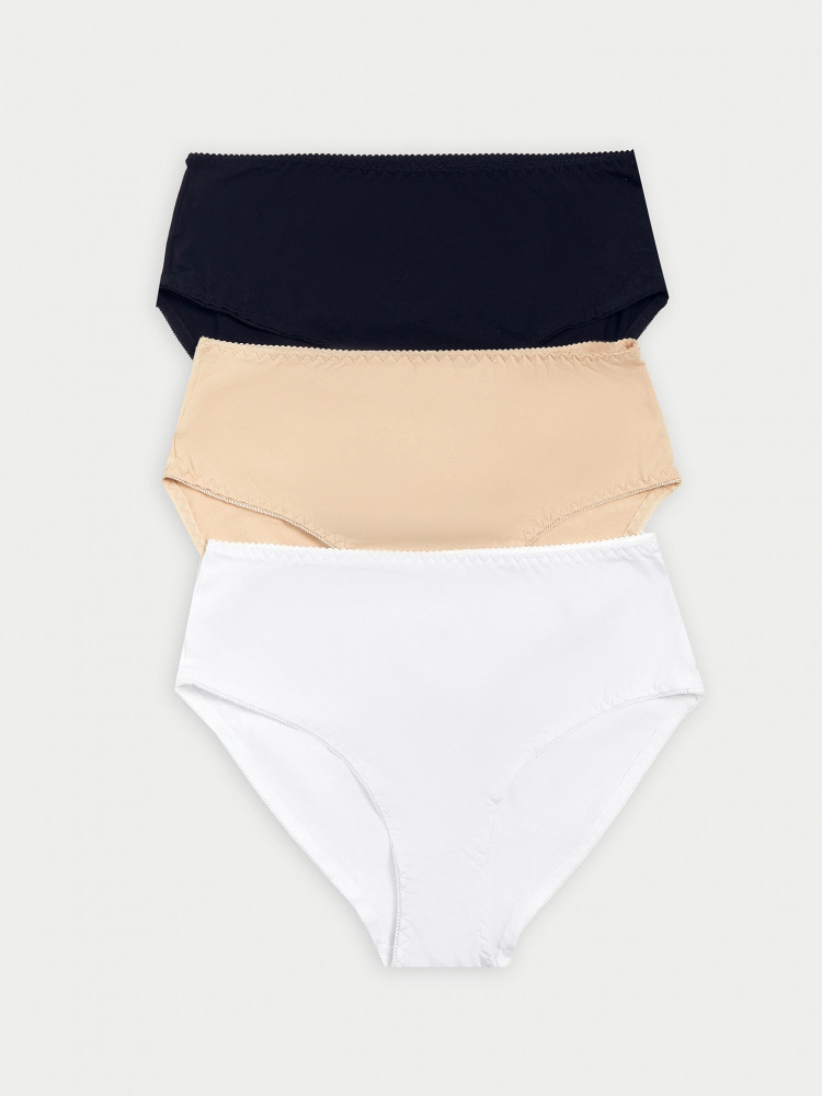 Комфортные женские трусики из трикотажного полотна до линии талии с широким бочком. Трусики продаются мультипаком по три единицы — это удобно, выгодно и практично. Высокая посадка по талии, широкие боковые части и полностью закрытые ягодицы — залог комфортной посадки на фигуре. Отлично подойдут дамам с пышными формами! Натуральный материал высочайшего качества: мягкий, дышащий, гипоаллергенный и долговечный, сохраняет вид даже после многочисленных стирок и обеспечивает чувство полного комфорта на протяжении всего дня. благодаря продуманной анатомичной конструкции, плоским швам и деликатным резиночкам, отлично подходят для повседневной носки и занятий спортом. Пригодятся они и будущим мамам: в этой модели ничего не давит, а значит абсолютно безопасно и комфортно для растущего животика.