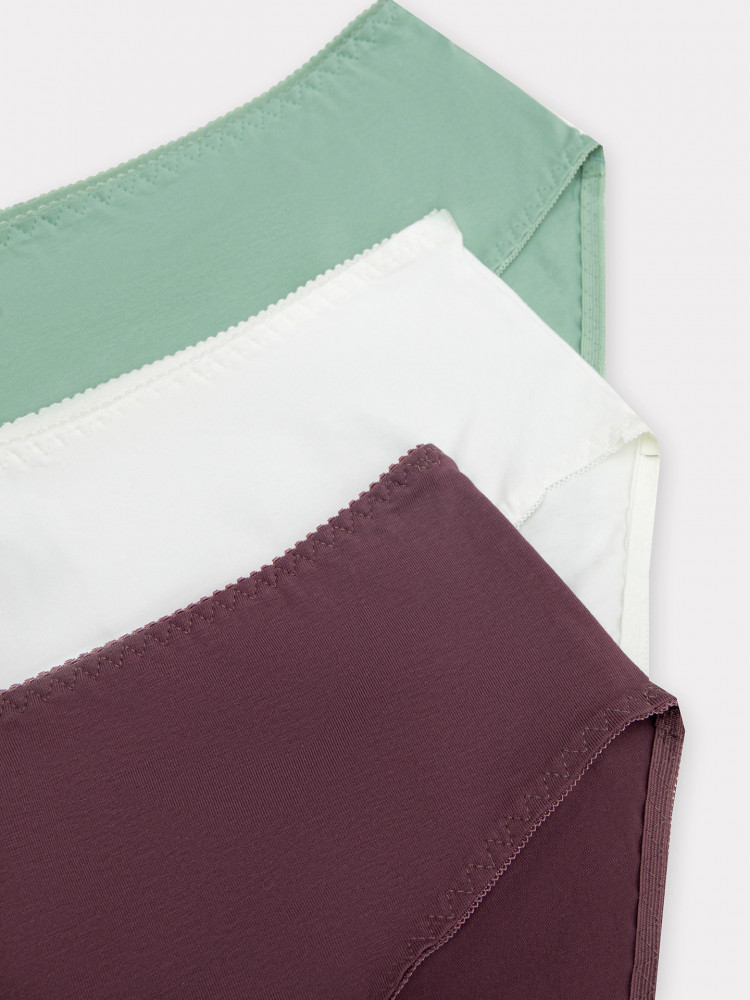 Комфортные женские трусики из трикотажного полотна до линии талии с широким бочком. Трусики продаются мультипаком по три единицы — это удобно, выгодно и практично. Высокая посадка по талии, широкие боковые части и полностью закрытые ягодицы — залог комфортной посадки на фигуре. Отлично подойдут дамам с пышными формами! Натуральный материал высочайшего качества: мягкий, дышащий, гипоаллергенный и долговечный, сохраняет вид даже после многочисленных стирок и обеспечивает чувство полного комфорта на протяжении всего дня. благодаря продуманной анатомичной конструкции, плоским швам и деликатным резиночкам, отлично подходят для повседневной носки и занятий спортом. Пригодятся они и будущим мамам: в этой модели ничего не давит, а значит абсолютно безопасно и комфортно для растущего животика.