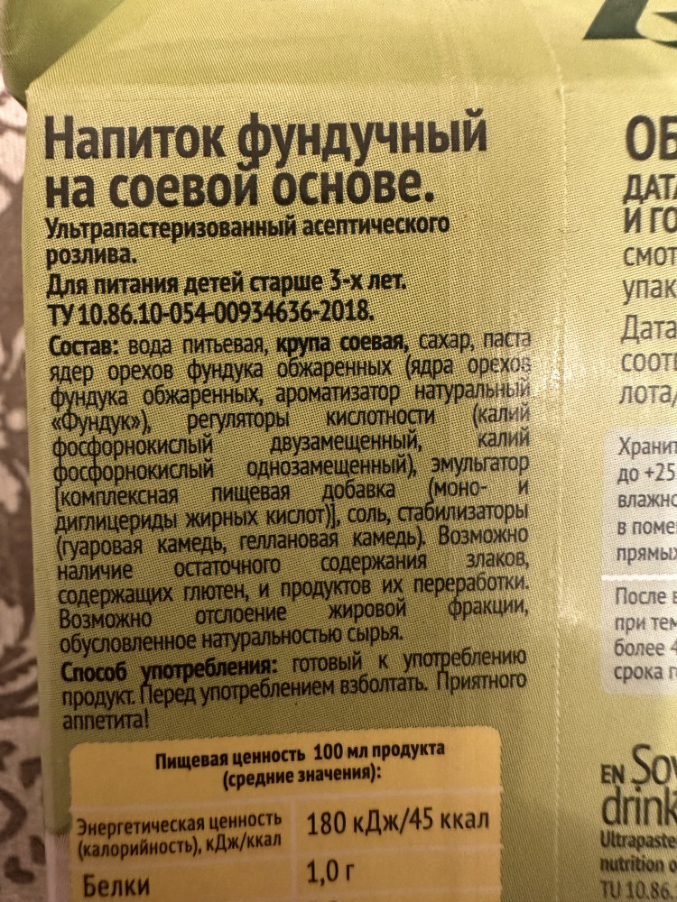Упаковка и состав продукта по факту (со вкусом лесного ореха), не совпадает с заявленным. Сахар в составе есть- а я искала именно состав без сахара. Поэтому, кому важно- обратите внимание на это. Вкус приятный, ореховый) не исключено, что это связано именно с сахаром😂
