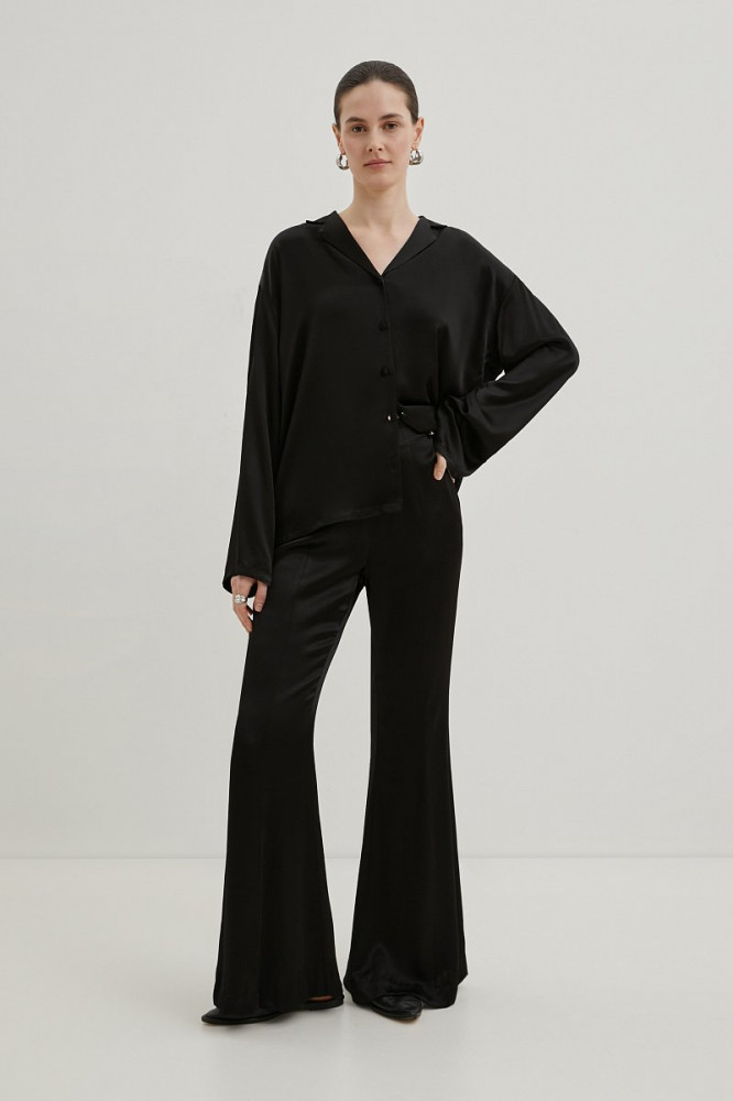 Женские брюки прямого силуэта с расклешенным низом — идеальное дополнение классического официального или стильного неформального образа. Средняя посадка модели отлично сочетается с рубашками или джемперами. Визуально удлиняющий силуэт крой можно подчеркнуть босоножками или туфлями на каблуке. Стильный и элегантный фасон впишется в любой гардероб и позволит создавать женственные и оригинальные образы на каждый день.