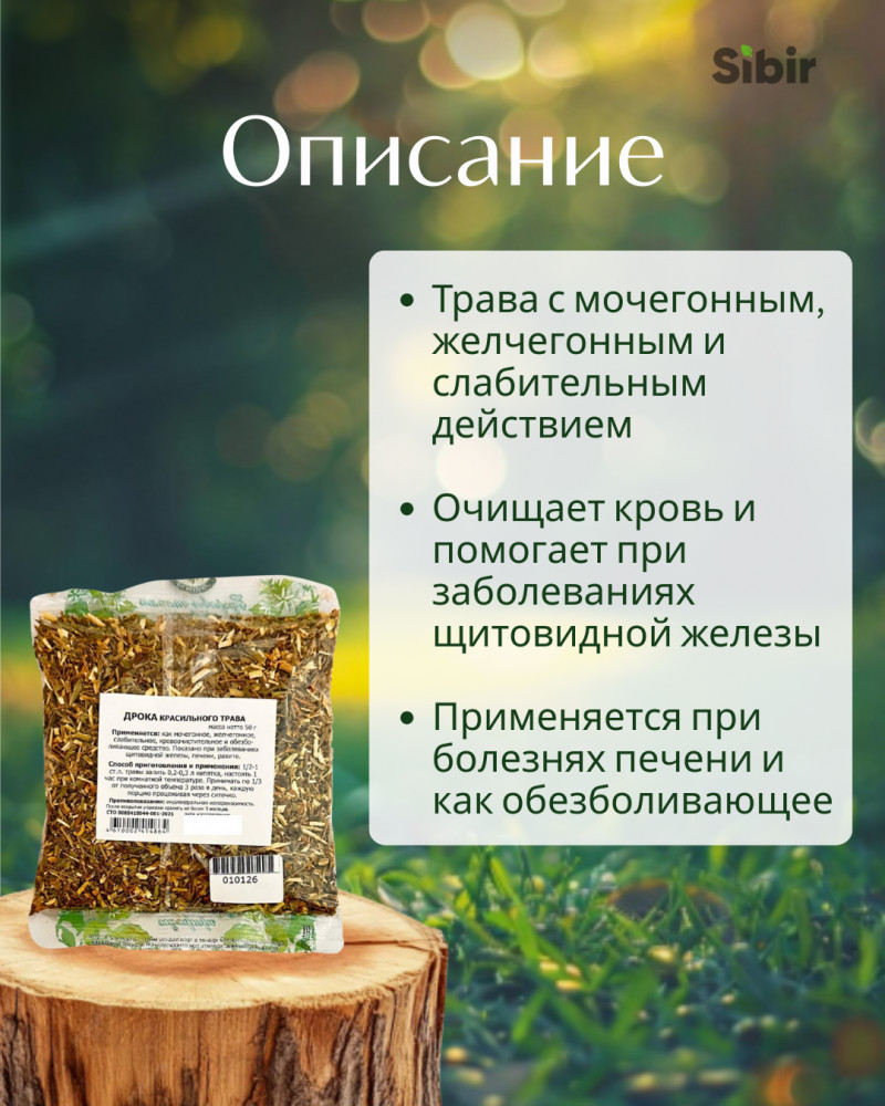 💳 Оплатить за товар можно при получении 🇰🇿 Есть бесплатная доставка по Казахстану от 1 дня 🎁 Копите бонусы с каждой покупки Дрока красильного трава 🌿 Применяется: как мочегонное, желчегонное, слабительное, кровоочистительное и обезболивающее средство 💊. Показано при заболеваниях щитовидной железы, печени, рахите. |