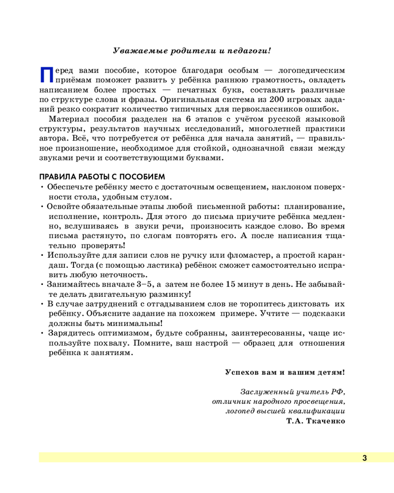 Татьяна Александровна Ткаченко — логопед высшей категории, заслуженный учитель РФ, автор 60-ти книг и учебных пособий для детей. |