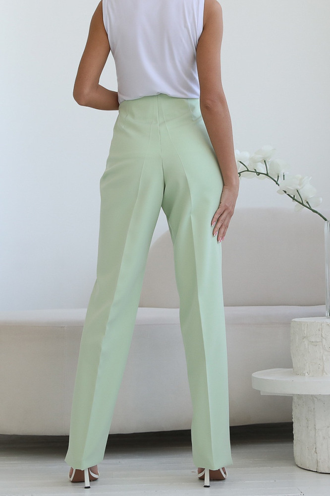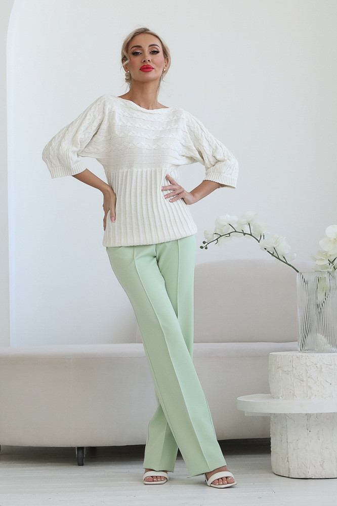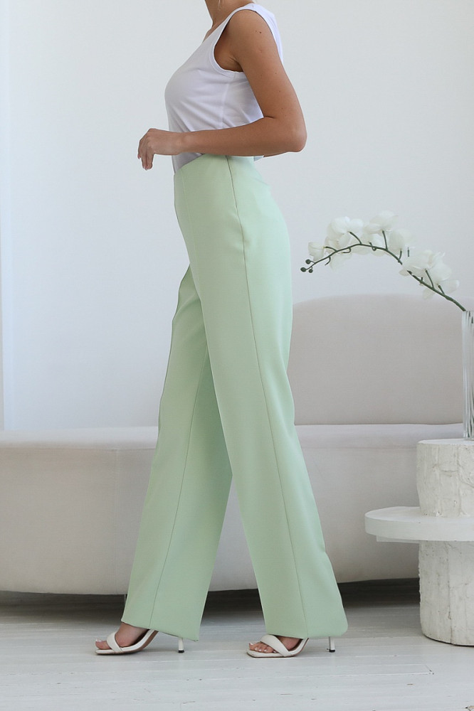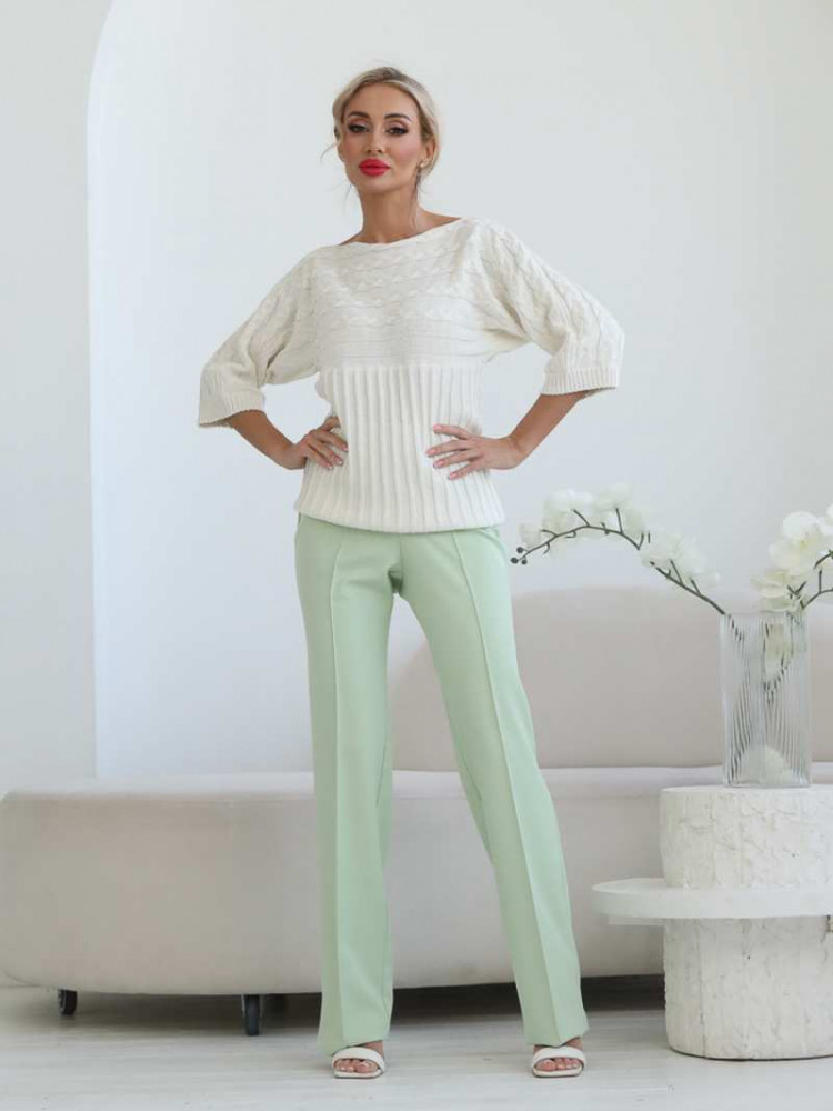 Высокая посадка, плотное облегчение, оформление стрелки спереди швейной строчкой - это очень облегчает глажку после стирки. Полагала, что ткань более плотная тяжёлая, по крайней мере, такой смотрится на фото. На самом деле брюки можно сказать лёгкие. Выписала ещё в двух цветах сером и темно зелёном.