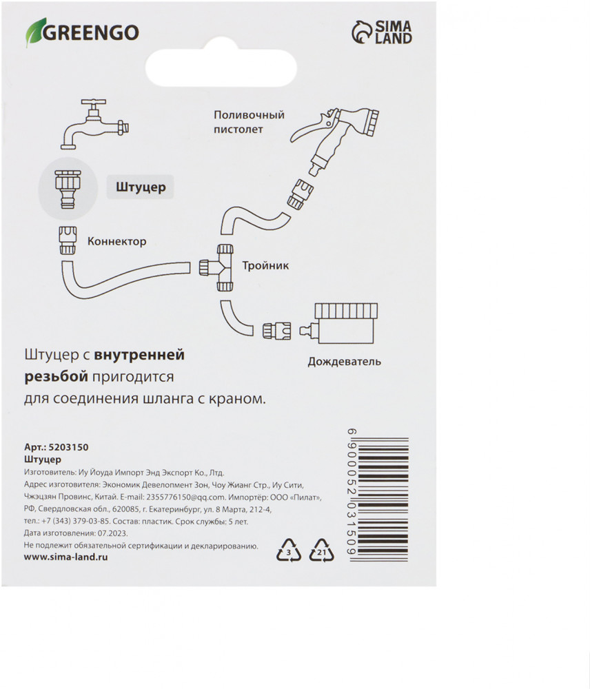 Адаптер с внутренней резьбой предназначен для плотного соединения шланга с краном подачи воды. Благодаря особой резьбе вы надежно защищены от протечек. Теперь ваш кран стал универсален и готов к подключению большинства поливочных систем. |