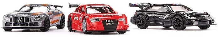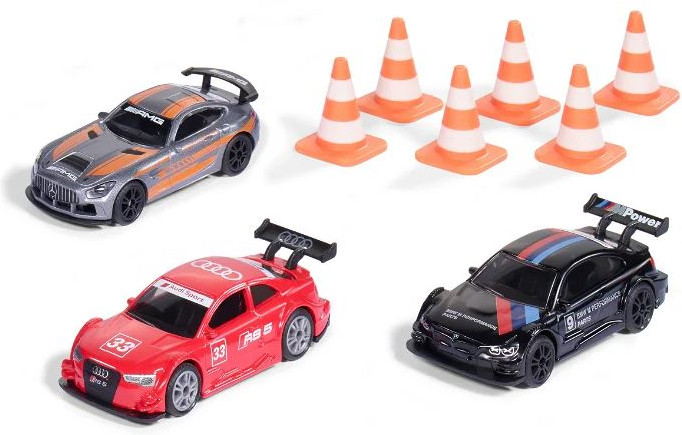 Такой набор точно понравится не только юным гонщикам, но и уже взрослым любителям скорости, ведь он отлично впишется в вашу автомобильную коллекцию! Mercedes-AMG GT4, Audi RS 5 Racing и BMW M4 Racing устроят супер захватывающую гонку в детской комнате! Спортивные диски с прорезиненными шинами, большие задние крылья, продуманный до мелочей дизайн - это то, что делает машины по-настоящему уникальными. Для правильной отправки трех гоночных автомобилей на трассу в комплект также входят шесть оранжево-белых конусов, которые можно использовать для обозначения трассы. |