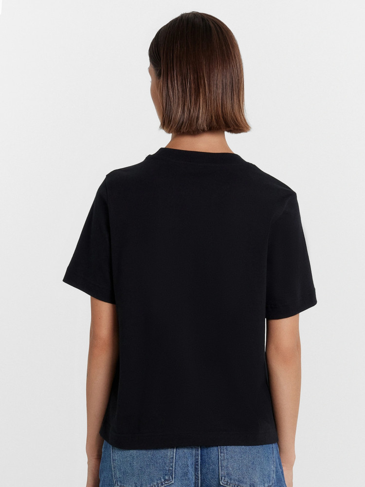 обычно беру размер хл, но у этой футболки свободный крой и л села лучше. нравятся длина, самое то для широких джинс.