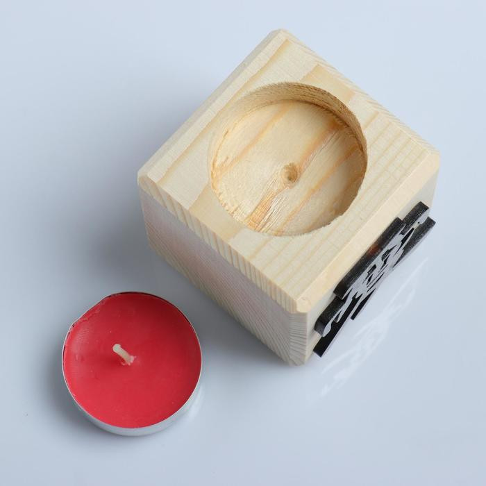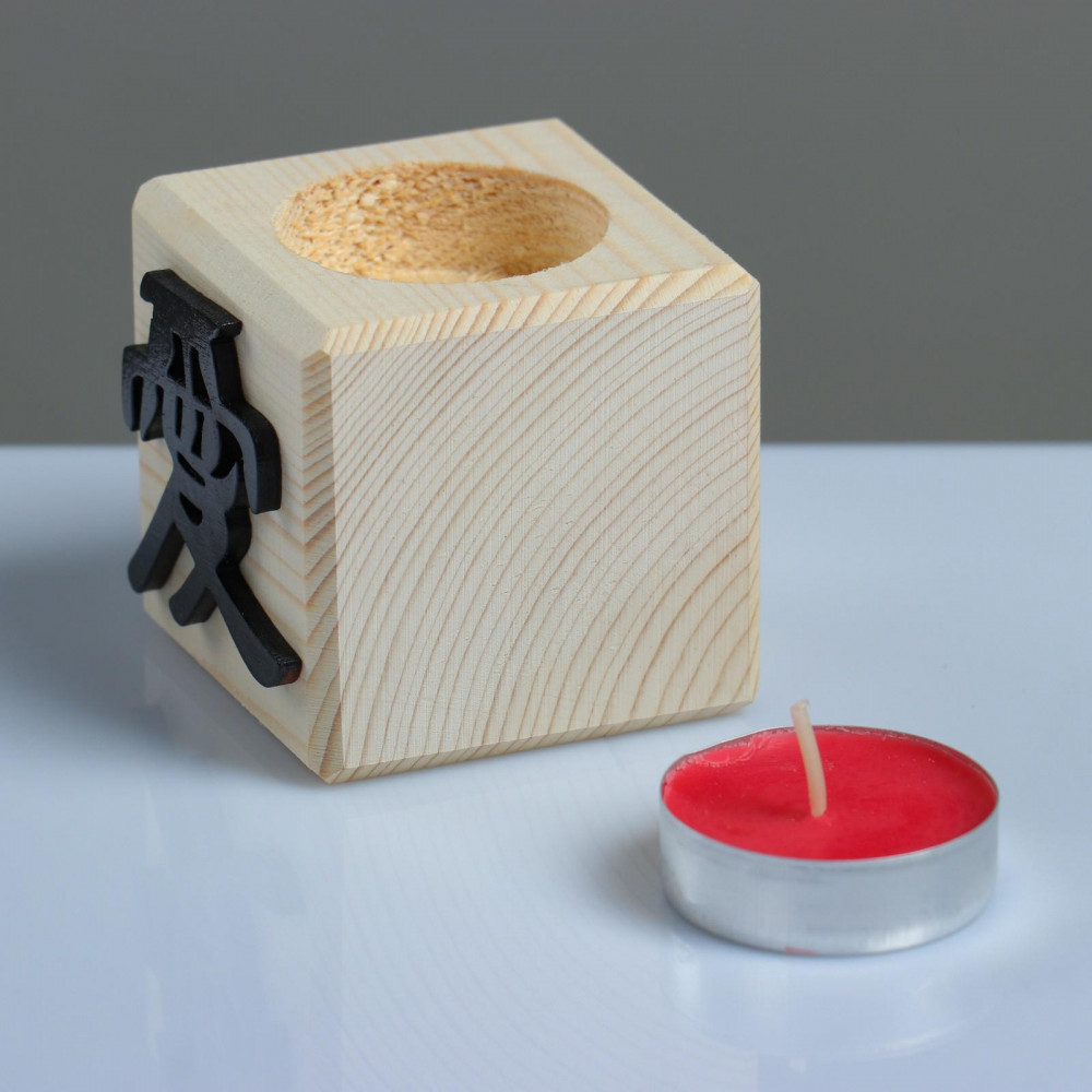 Свеча в деревянном подсвечнике «Куб, Иероглифы. Любовь»