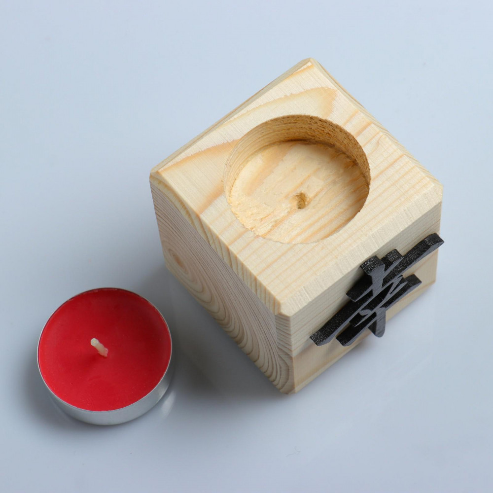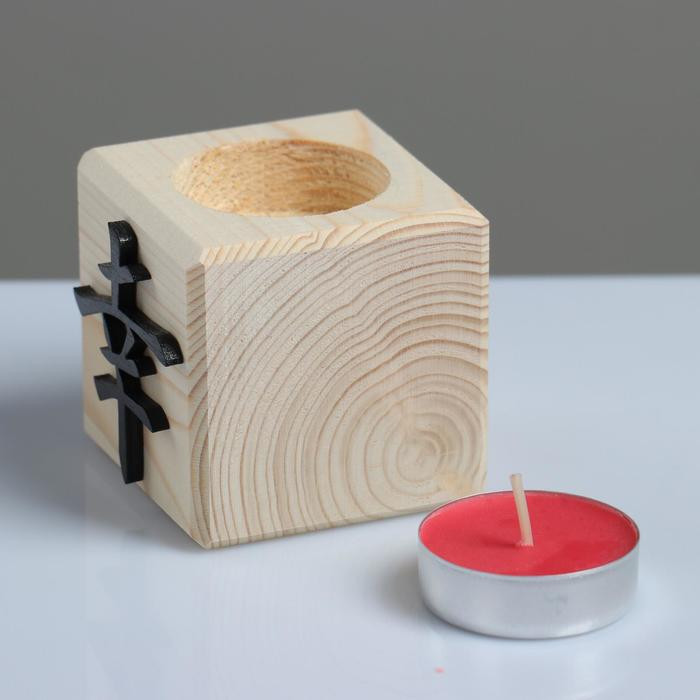 Свеча в деревянном подсвечнике «Куб, Иероглифы. Удача»