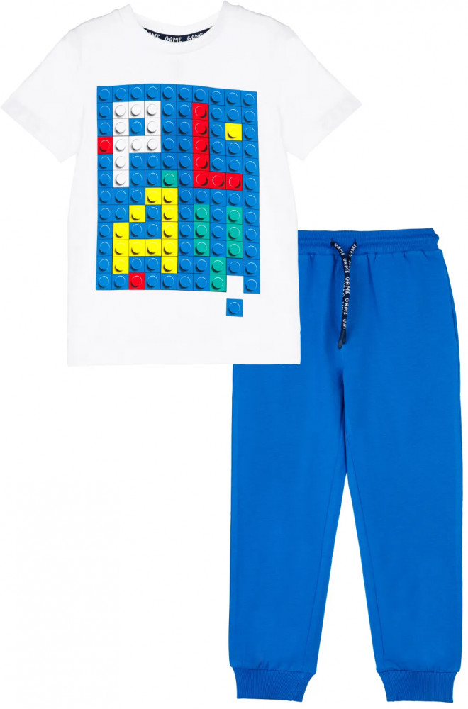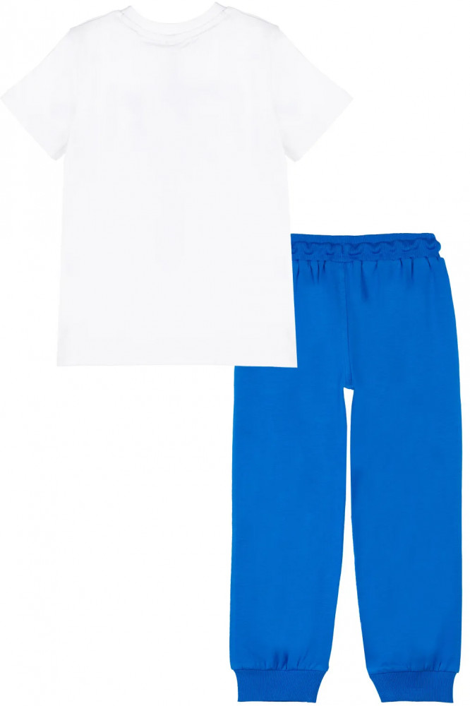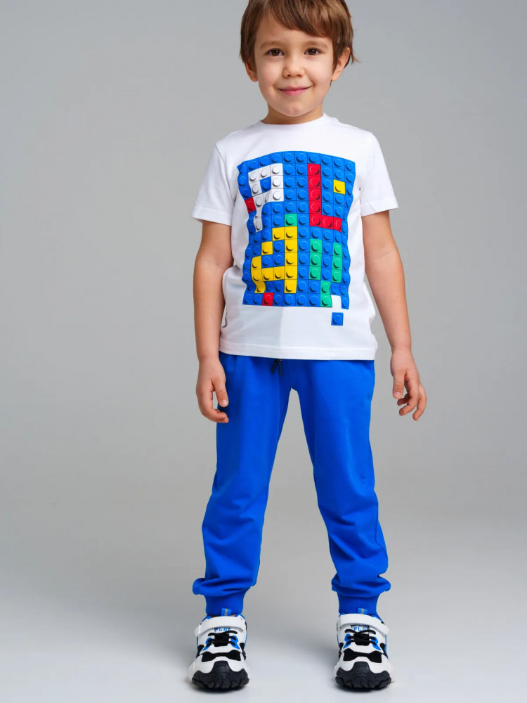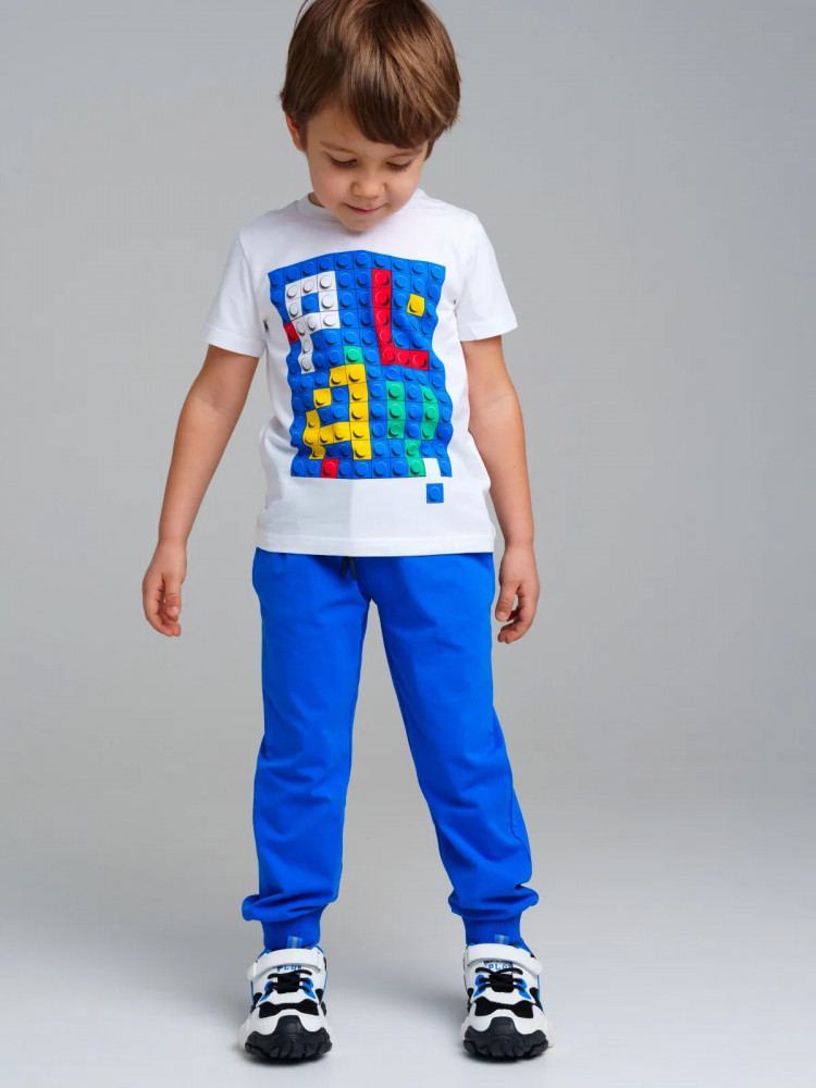 Комплект: футболка, брюки. Посадка regular fit. Из качественного эластичного и приятного на ощупь трикотажа джерси. Высокое содержание хлопка 95%. Благодаря наличию эластана в составе ткани изделие держит форму и меньше мнется. Принт сохраняет первоначальный вид даже после многочисленных стирок. Эластичный пояс с тесьмой позволяет легко надевать и утягивать до идеальной посадки в зависимости от комплекции ребенка. Нижняя кромка брючин в эластичный рубчик.