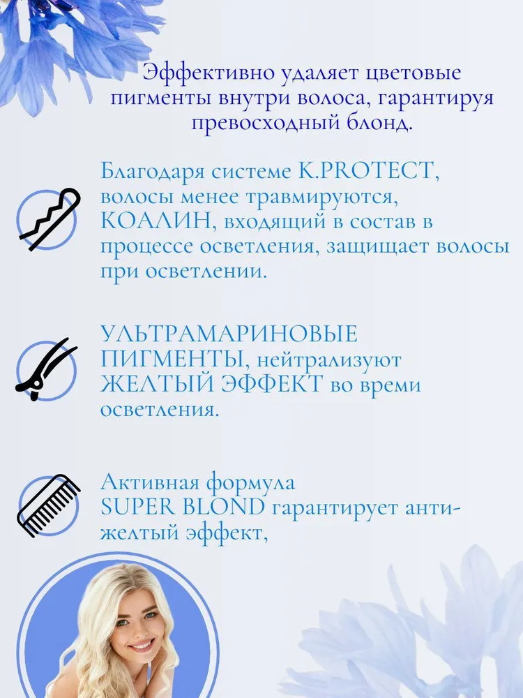 Acme-Color Осветлитель для волос «Super Blond»В данный момент этот товар отсутствует в продаже. Возможно, у нас найдется аналогичный или похожий товар здесь. Серия: Rowena Осветлитель Rowena «Super Blond» подходит для любых типов волос и всех технологий блондирования. Максимальной эффект осветления до 7 тонов. Интенсивность результата зависит от глубины тона волос, на который наносится средство. Удобная текстура с отличными косметическими свойствами. Подходит как для профессионального применения, так и для осветления волос в домашних условиях. |
