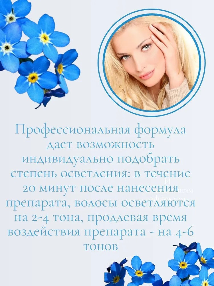 💳 Оплатить за товар можно при получении 🇰🇿 Есть бесплатная доставка по Казахстану от 1 дня 🎁 Копите бонусы с каждой покупки Современный профессиональный продукт Rowena «Blond Classic» подходит для любых типов волос и всех технологий блондирования. Максимальной эффект осветления до 6 тонов. Интенсивность результата зависит от глубины тона волос, на который наносится средство. Удобная текстура с отличными косметическими свойствами. Подходит как для профессионального применения, так и для осветления волос в домашних условиях. |