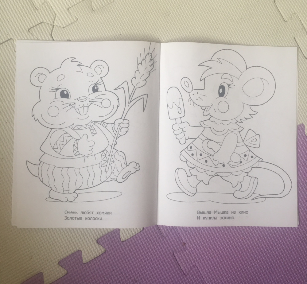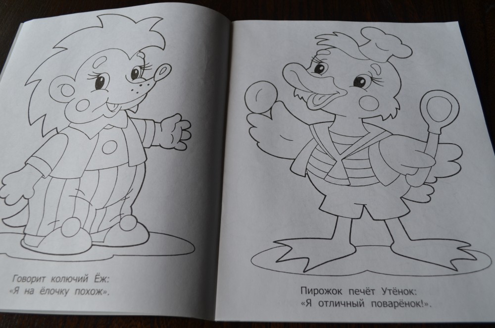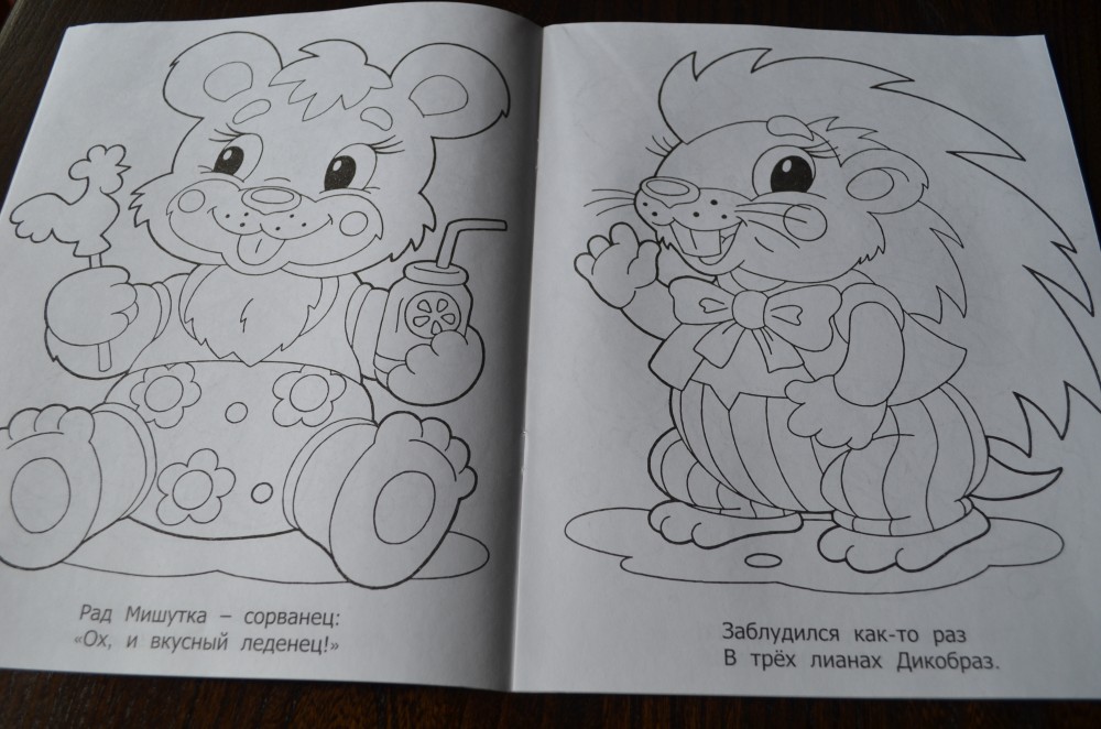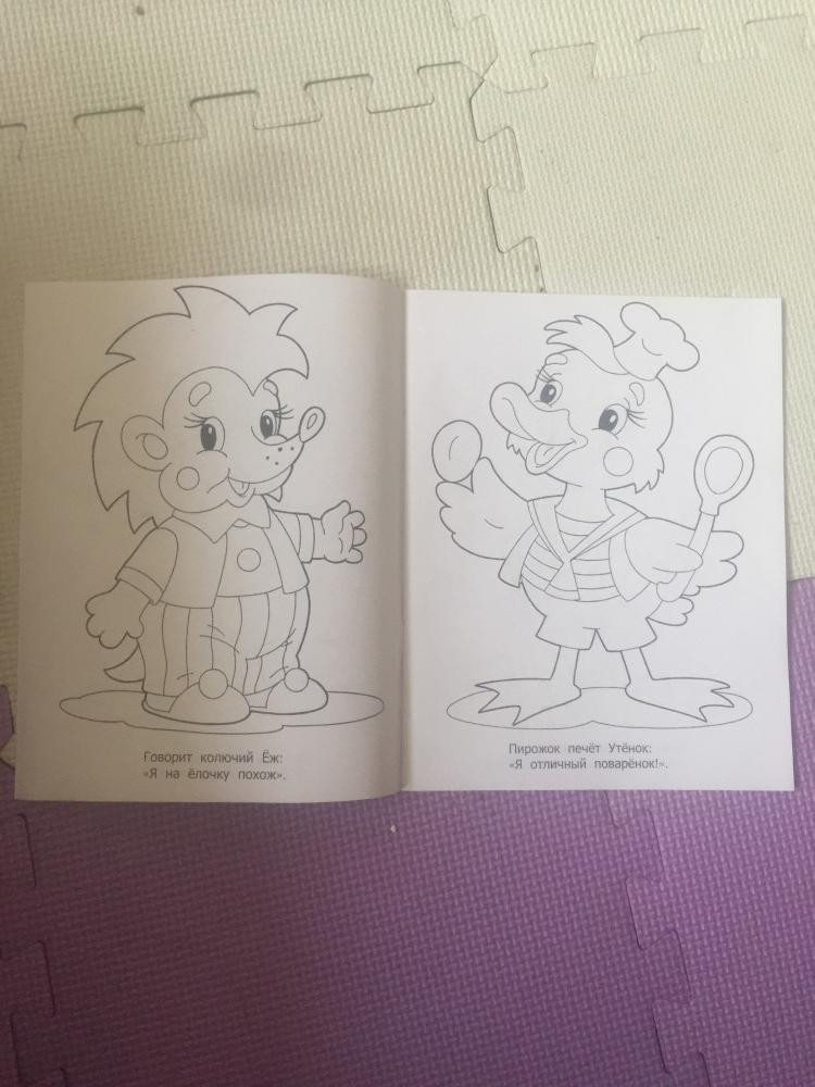 Красивые картинки, правда, тонкая бумага, но мы это исправили - копируем листы и раскрашиваем их, да и книжка до сих пор новая))