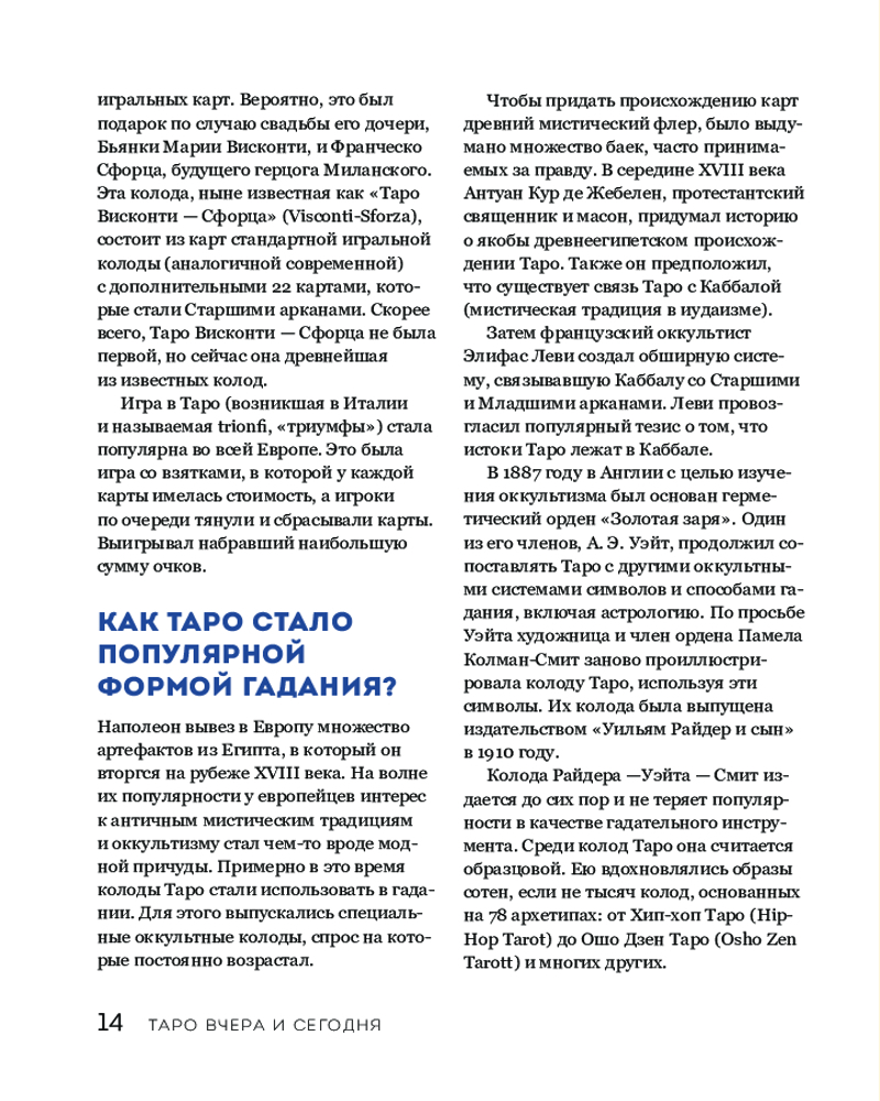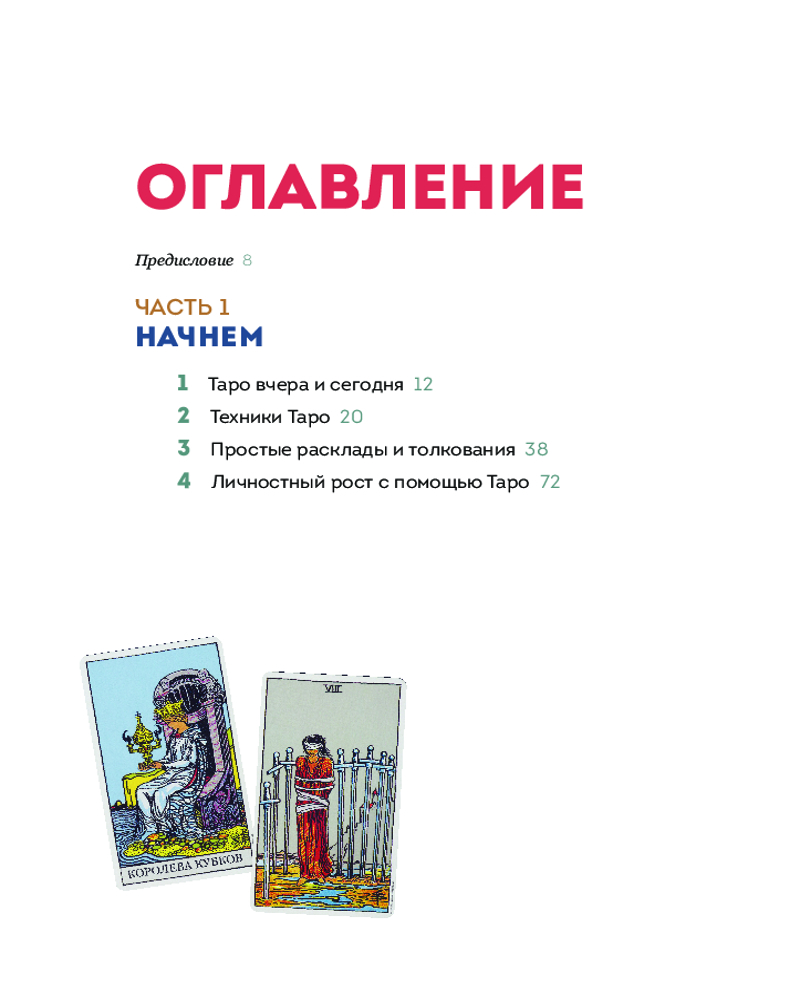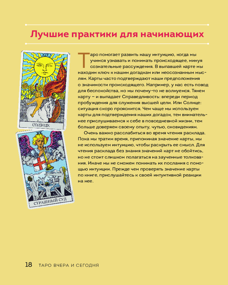 • познакомитесь с основными сведениями о таро — его краткой историей, символизмом и узнаете, как использовать свою интуицию во время раскладов и чтения карт;