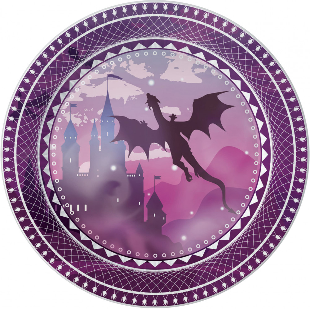 💳 Оплатить за товар можно при получении 🇰🇿 Есть бесплатная доставка по Казахстану от 1 дня 🎁 Копите бонусы с каждой покупки Серия: Дракон Набор бумажных тарелок «Дракон фиолетовый» − стильный элемент для украшения Новогоднего стола, вечеринки или Дня Рождения. На каждой тарелке изображен красивый фиолетовый дракон, парящий на закате на фоне старинного замка и гор. Края тарелки украшены резным орнаментом. |