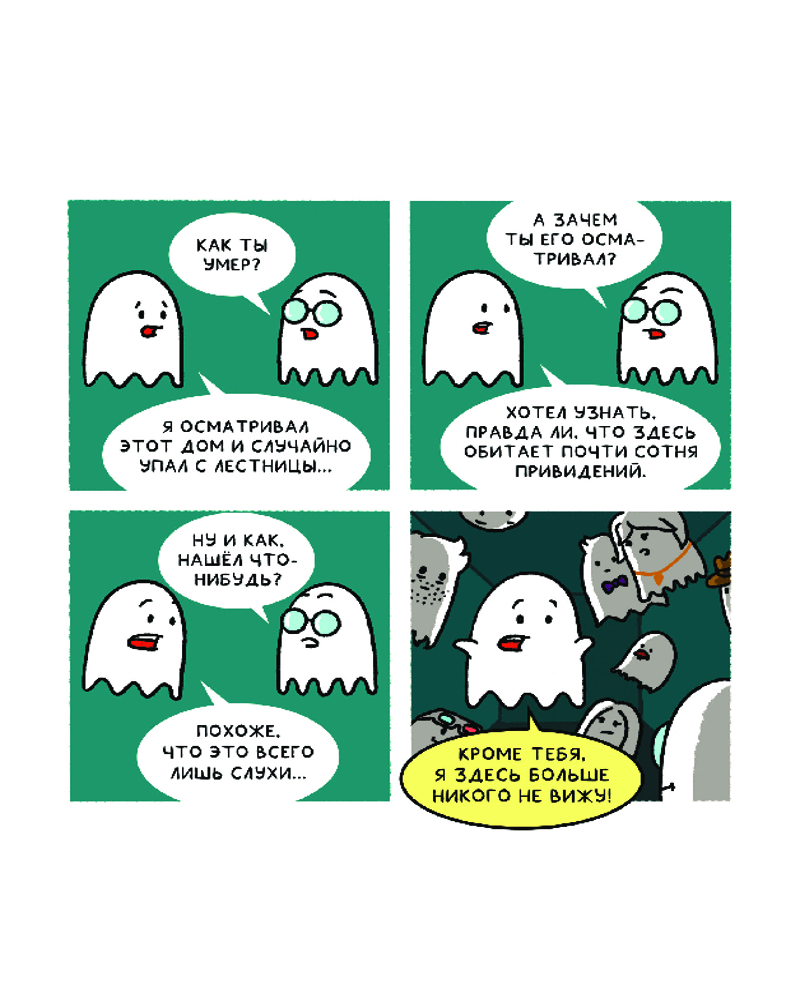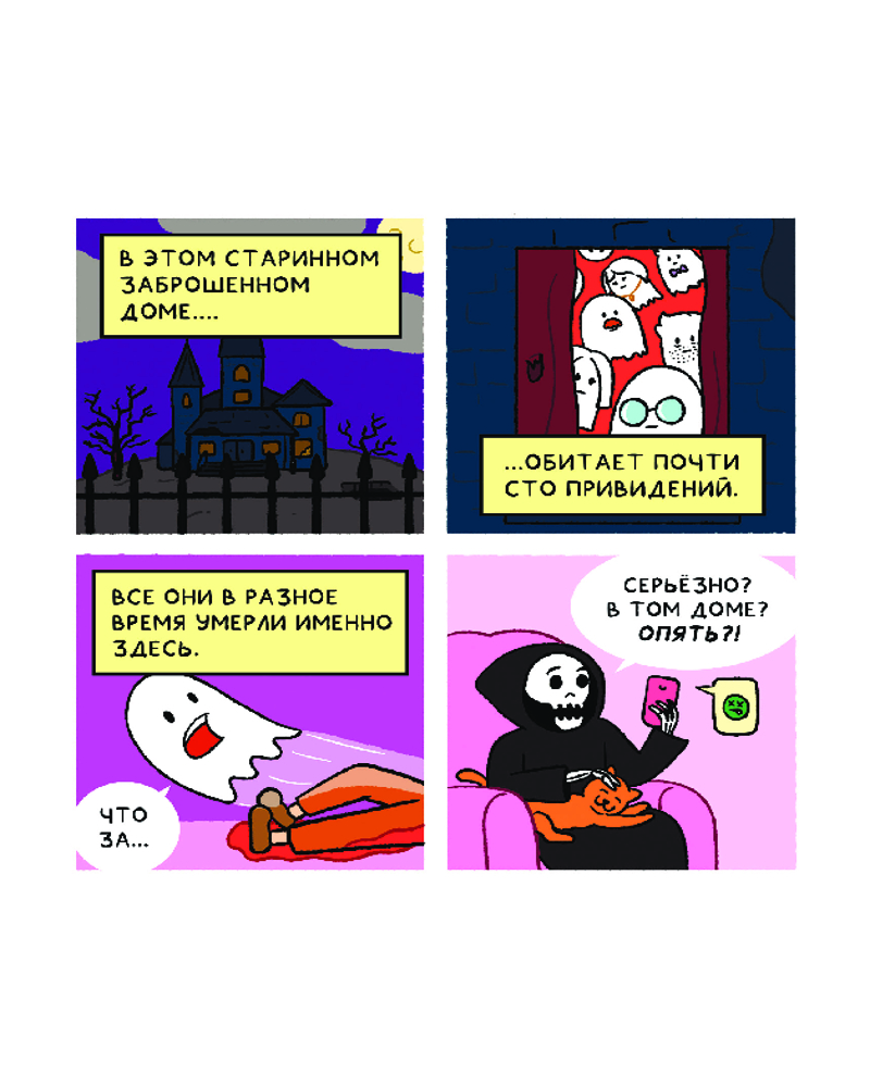 💳 Оплатить за товар можно при получении 🇰🇿 Есть бесплатная доставка по Казахстану от 1 дня 🎁 Копите бонусы с каждой покупки Серия: Комильфо. Своя волна В одном старинном заброшенном доме обитает почти сотня призраков — каждый со своим характером и историей. Среди них ленивый холостяк, ревнивая пара, гик, друзья-приколисты, серийный убийца, стериотипная красотка и, конечно, сама Смерть. Всем им приходится уживаться друг с другом, а иногда и натыкаться на непрошеных гостей... Чёрный юмор, мистическая атмосфера, сверхъестественно мило, ужасно смешно! Просто умора! |